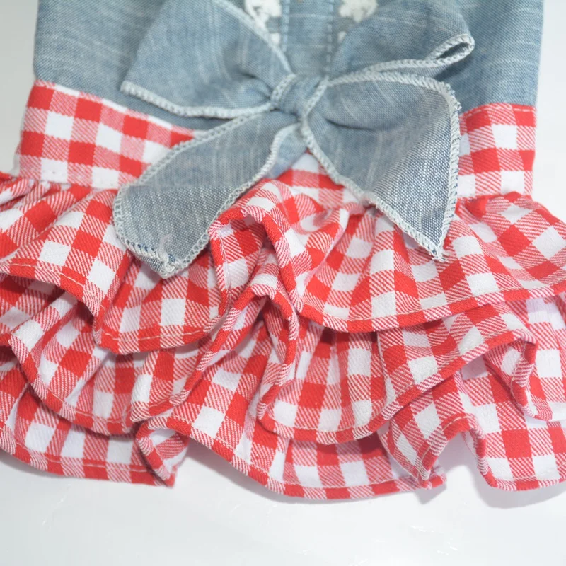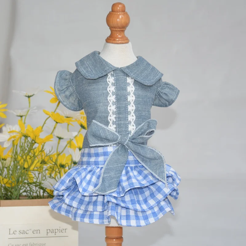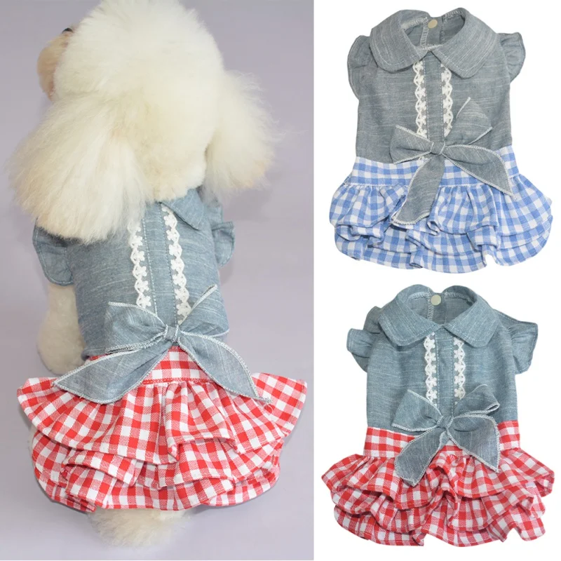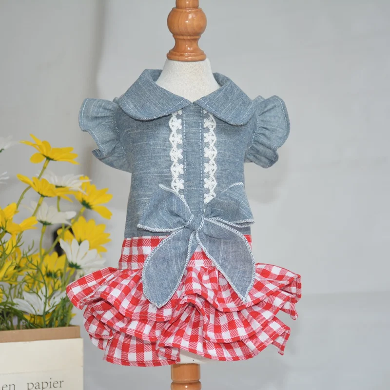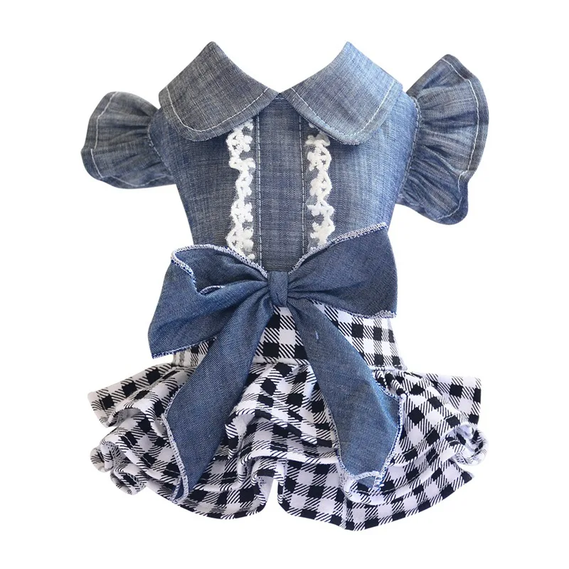 5. El vestido de vaquero con lazo es fresco y lindo, lo que puede hacer que sus perros sean más atractivos y modernos.