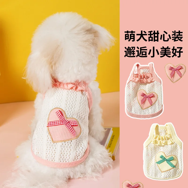 Ropa de primavera para perros, correas con lazo de amor, ropa para cachorros y gatos de peluche, chaleco para perros pequeños