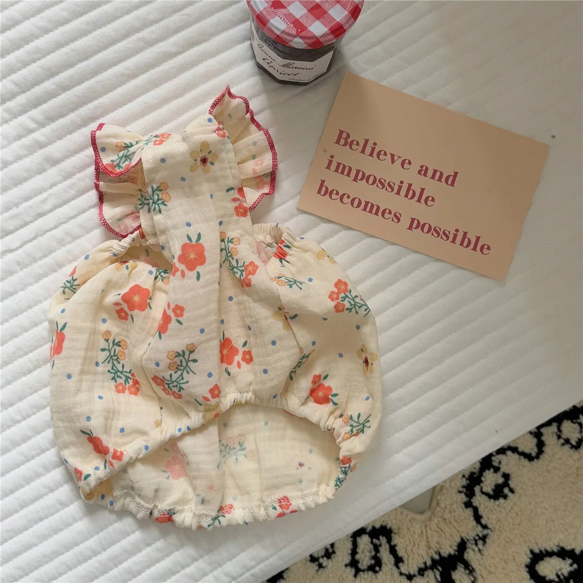 Ropa de primavera para perros y gatos, chaleco de encaje Floral, falda de princesa, vestido de calabaza de peluche transpirable, ropa para perros pequeños