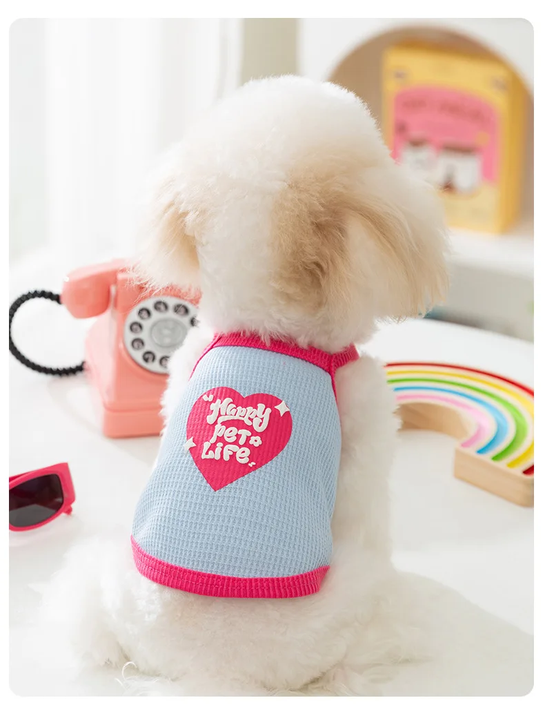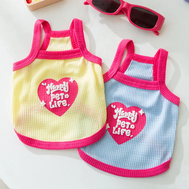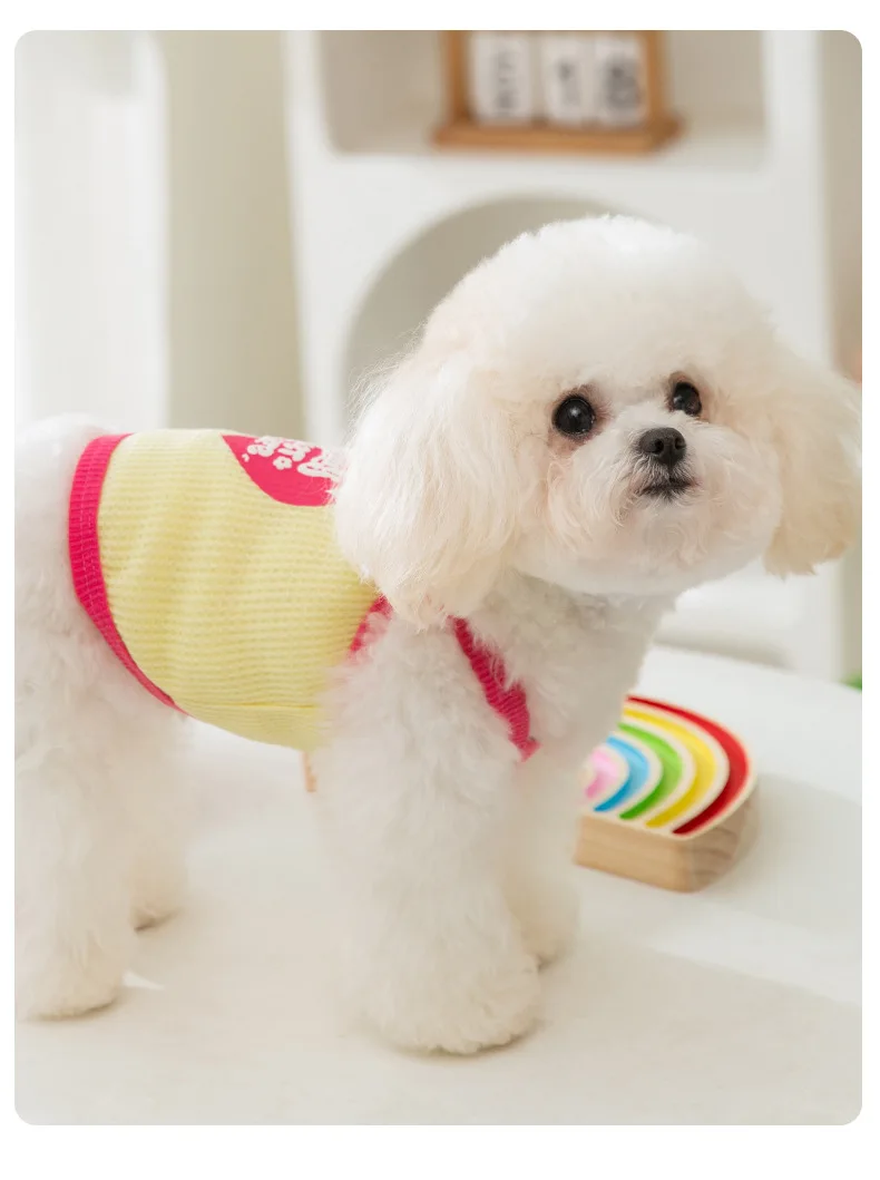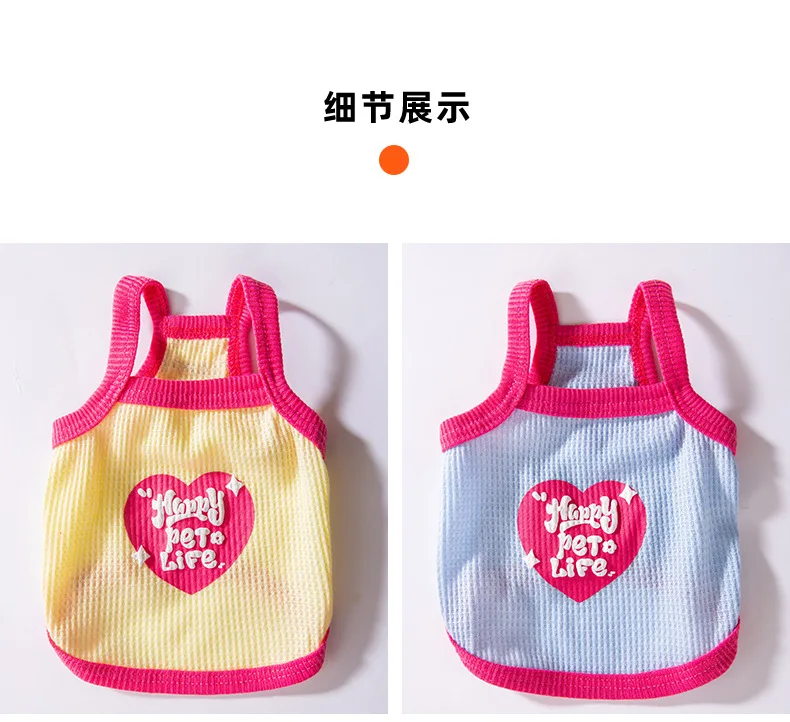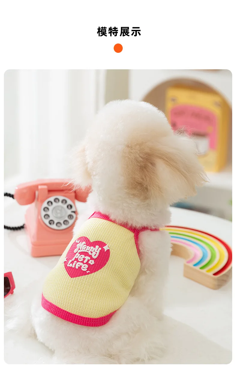 Ropa de primavera para perros, gofres de amor, correa fina para mascotas, chaleco refrescante de Color caramelo para perros y gatos, ropa para cachorros