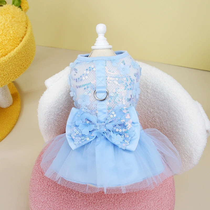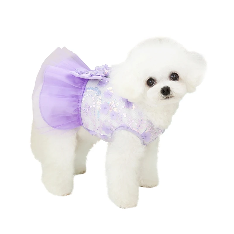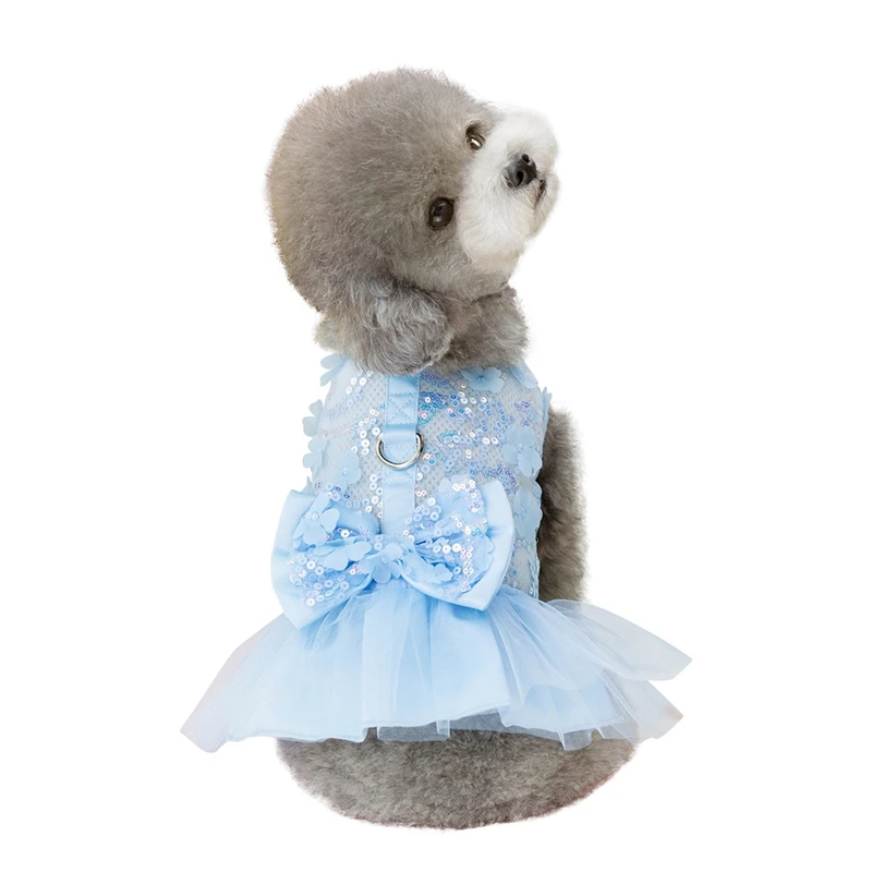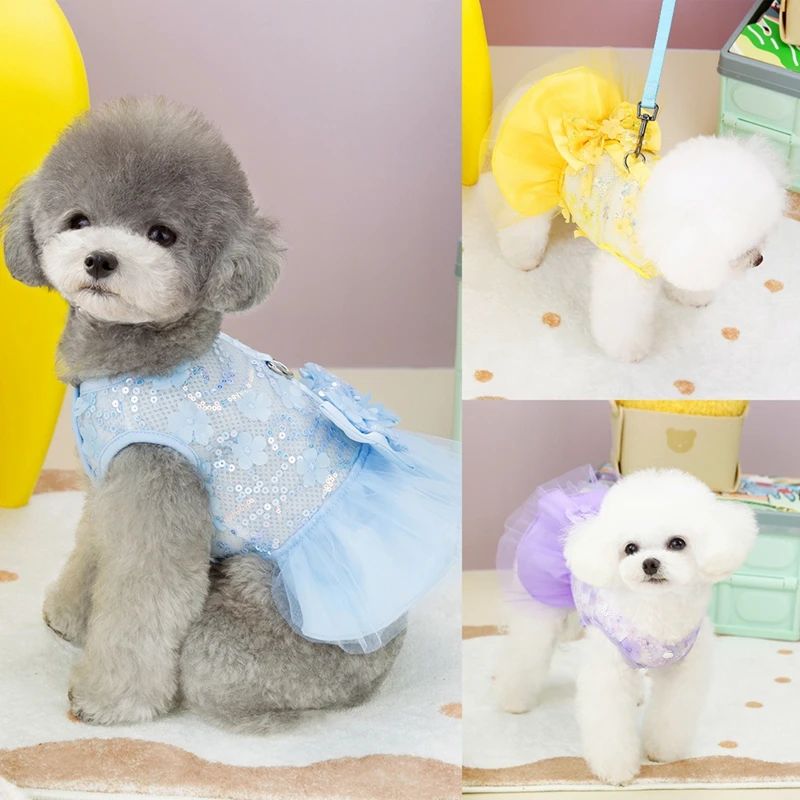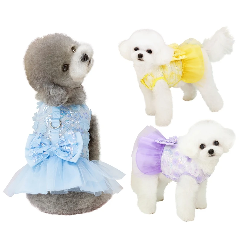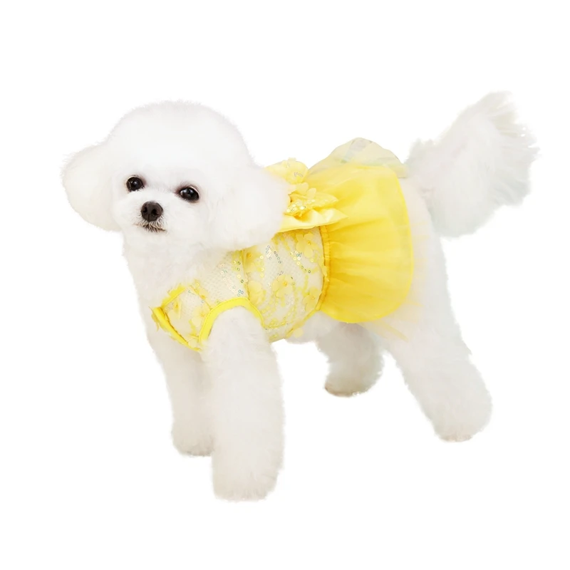 4. El vestido de verano para cachorros es un pequeño atuendo adecuado para perros. Puede ayudar a su mascota a destacar entre la multitud y mejorar su apariencia inocente y hermosa en varias ocasiones.