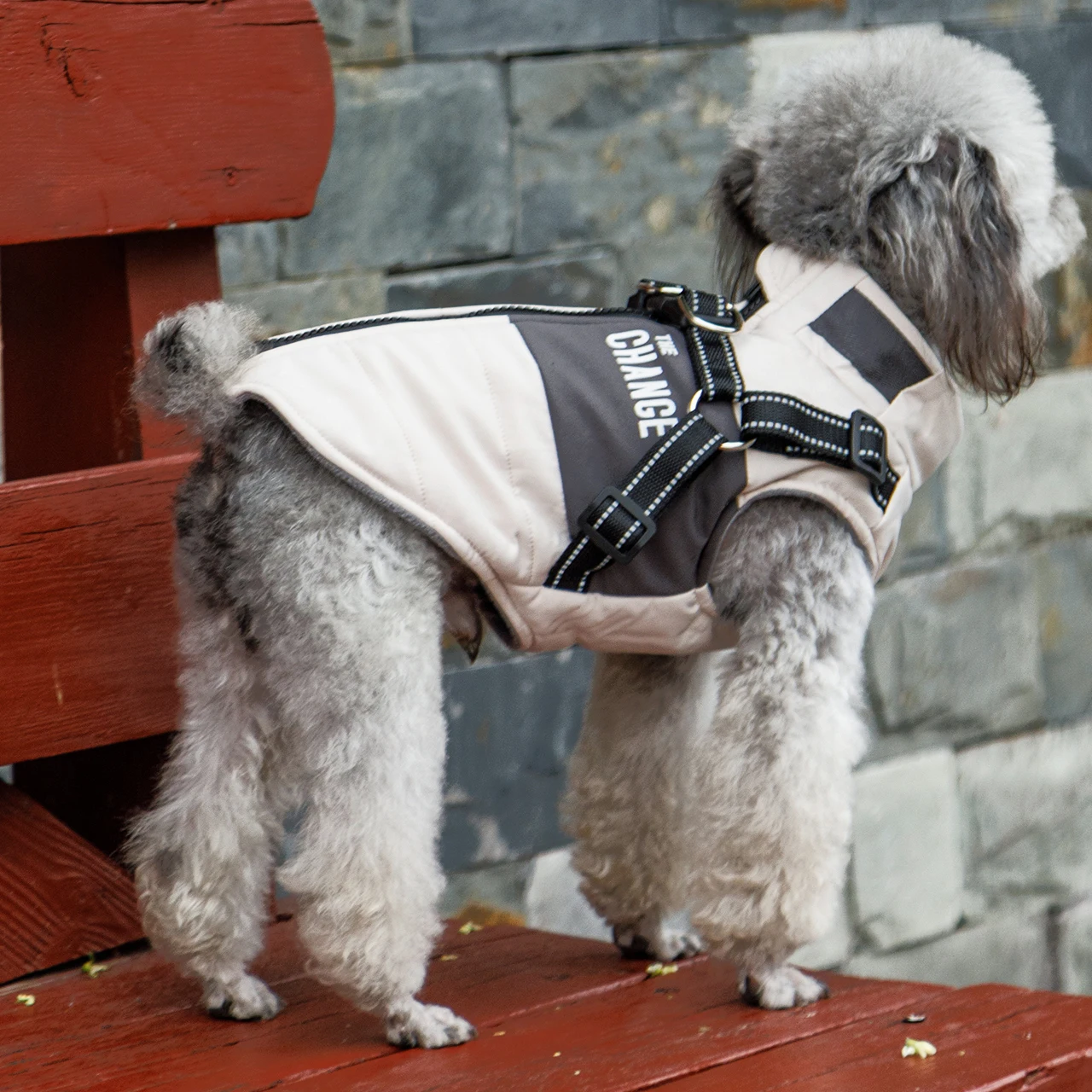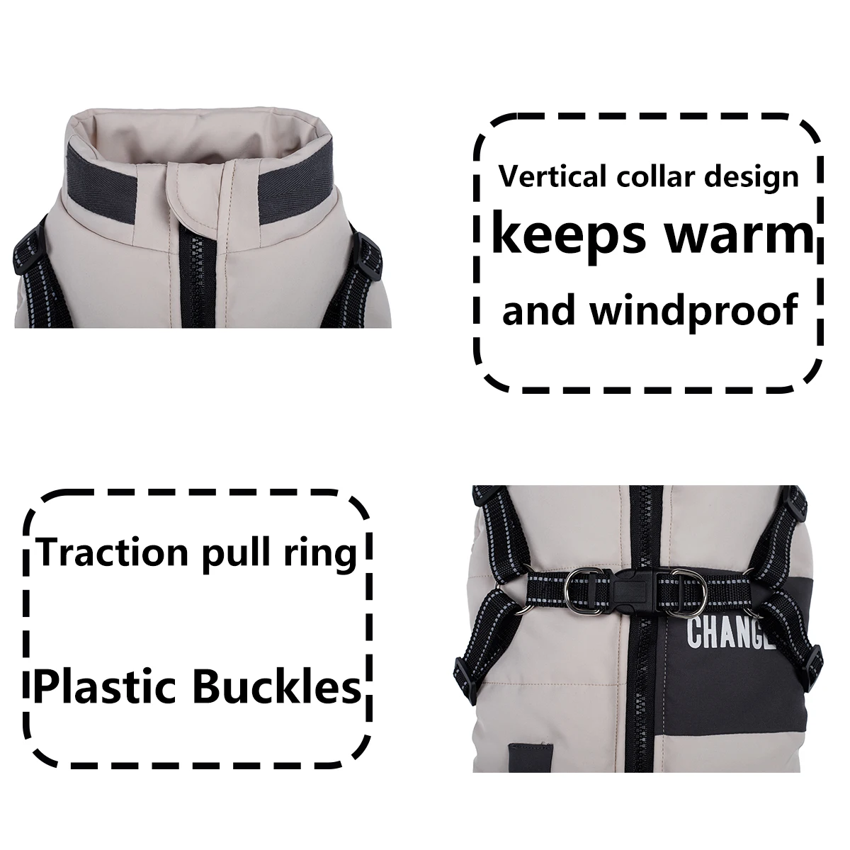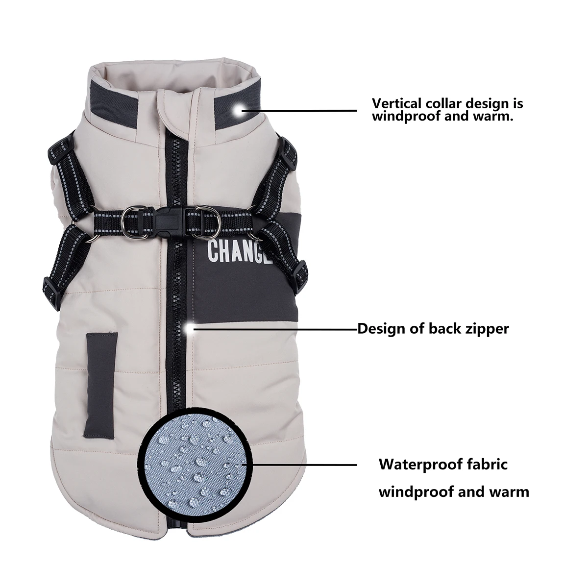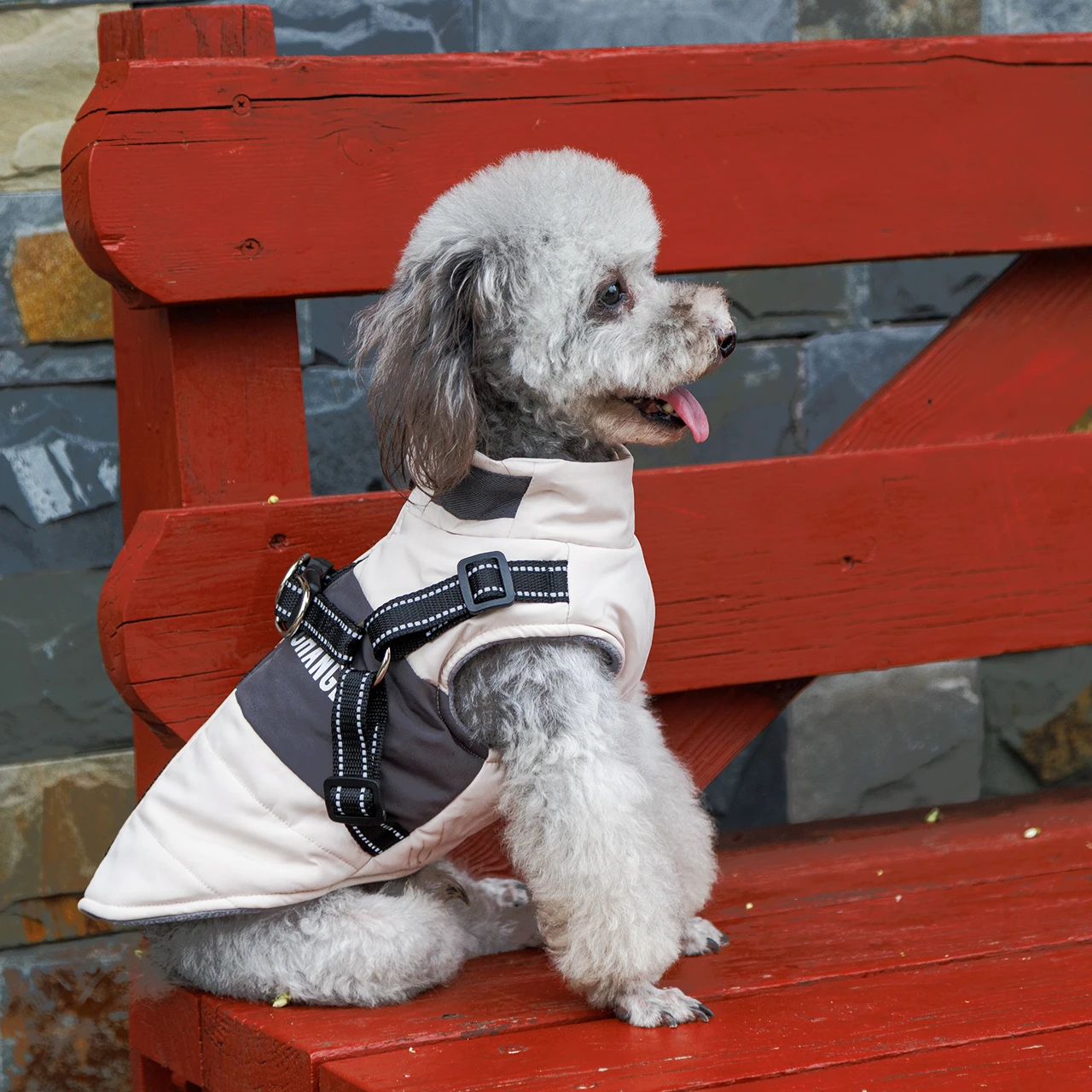 Descripción del producto: Ropa para perros a prueba de viento Abrigo de invierno con arnés - Ropa cálida para mascotas para perros pequeños**