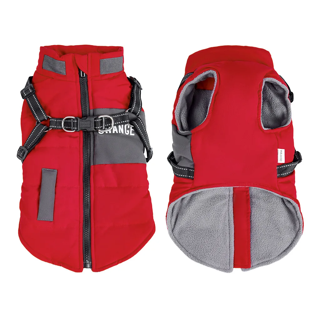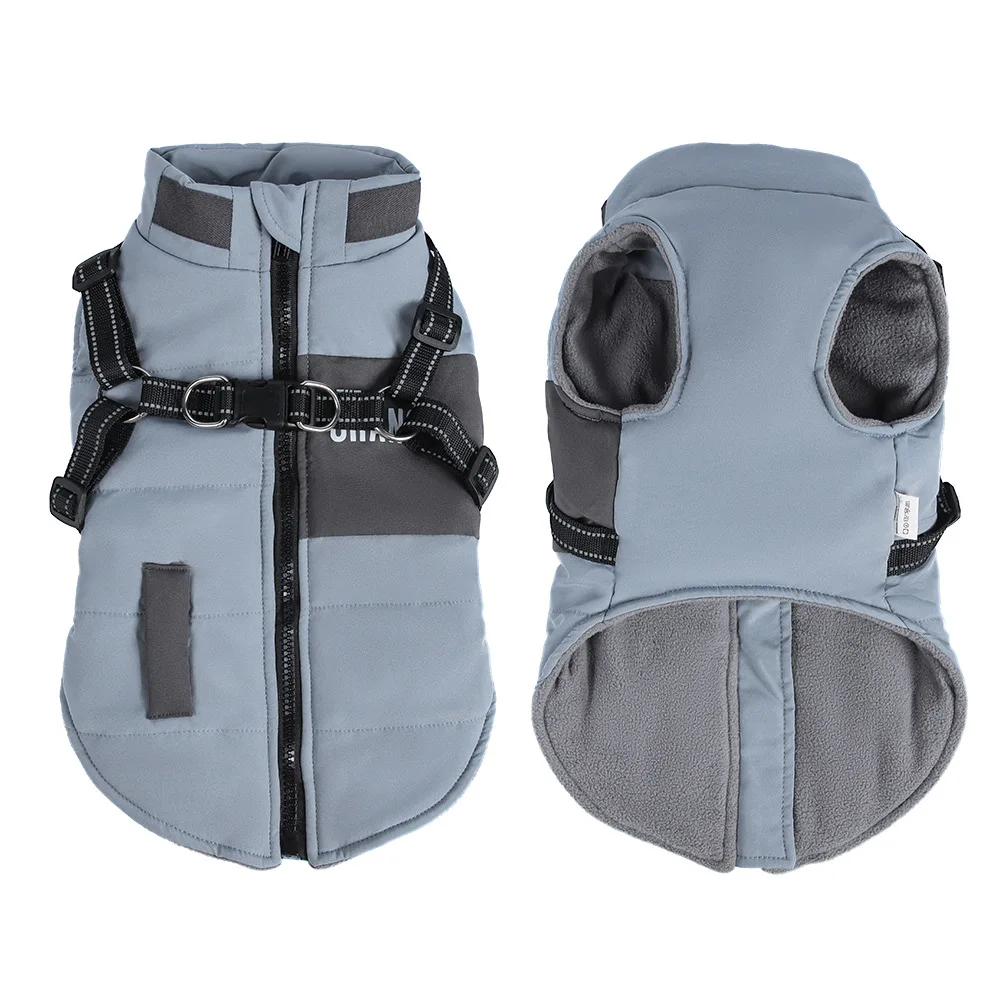 Confeccionado con materiales resistentes al viento de alta calidad, este abrigo protege a su mascota de los vientos fríos y al mismo tiempo proporciona una acogedora capa de calidez.La innovadora función de arnés le permite sujetar fácilmente una correa sin comprometer la comodidad o la libertad de movimiento de su perro.No más correas enredadas ni configuraciones complicadas: ¡solo salidas simples y convenientes!