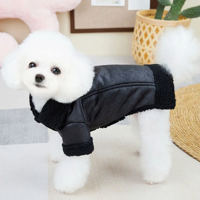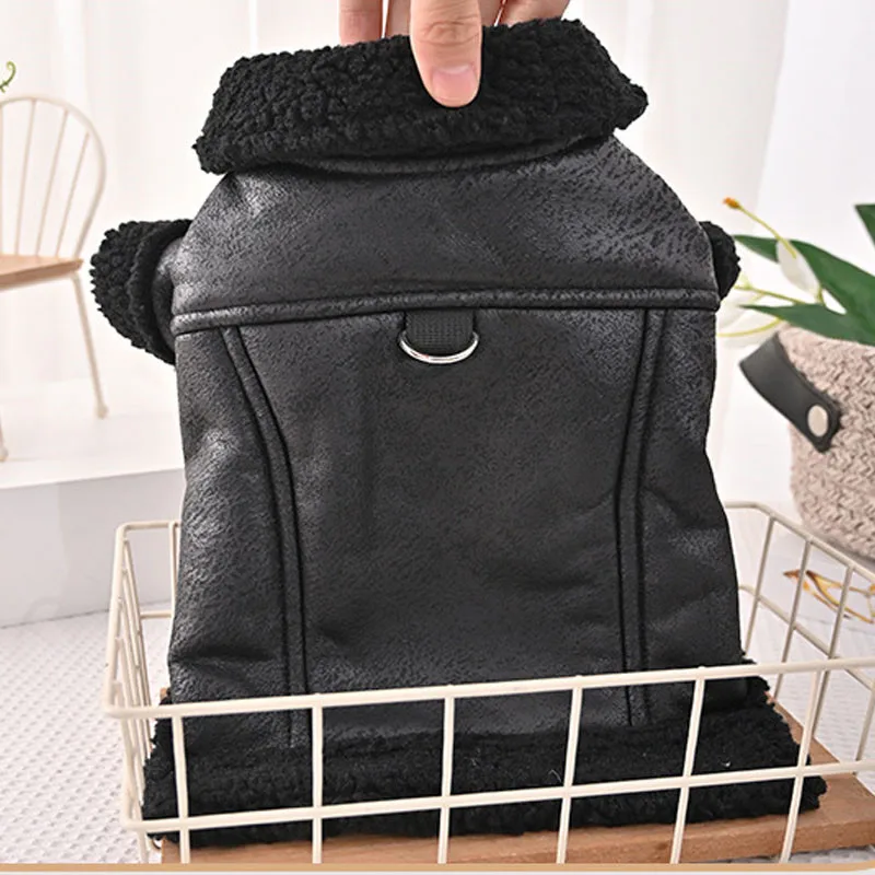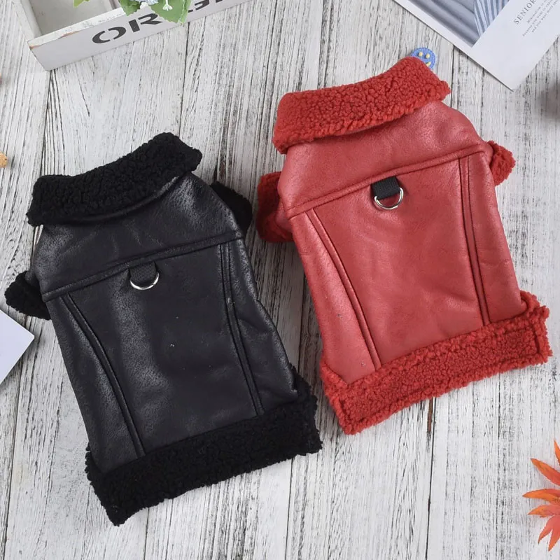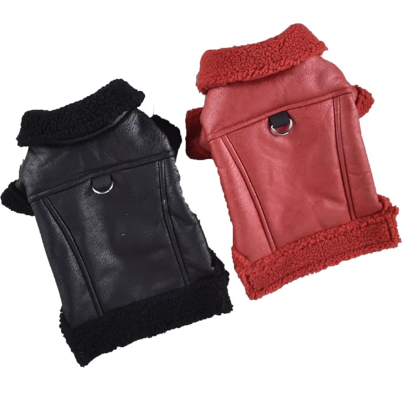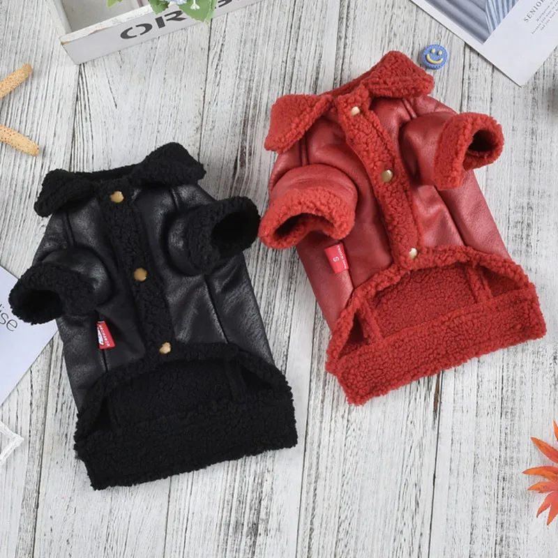 Chaqueta de abrigo para perro de PU roja y negra, ropa para perro mascota con cuello polar de invierno para perros pequeños, medianos y grandes, abrigo para cachorros Dachshund, ropa XL