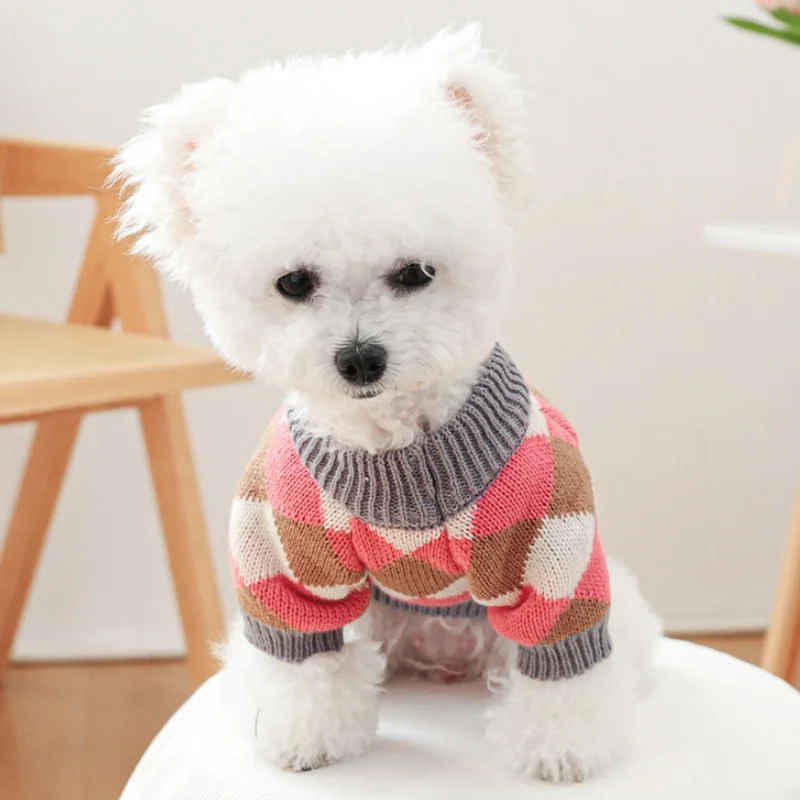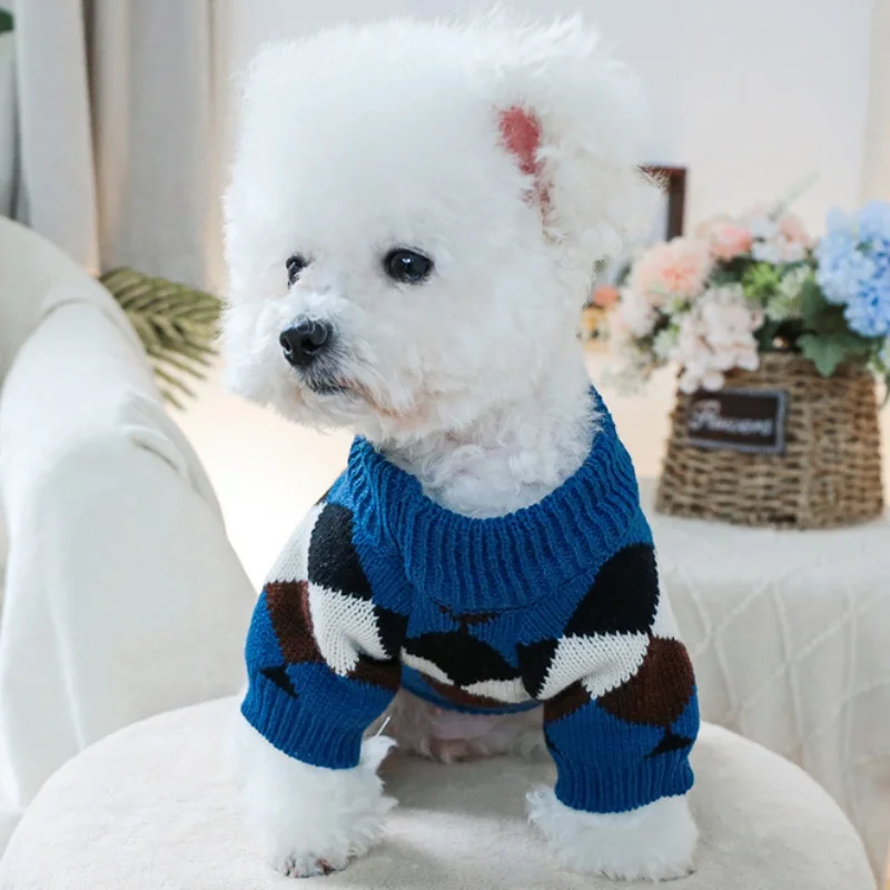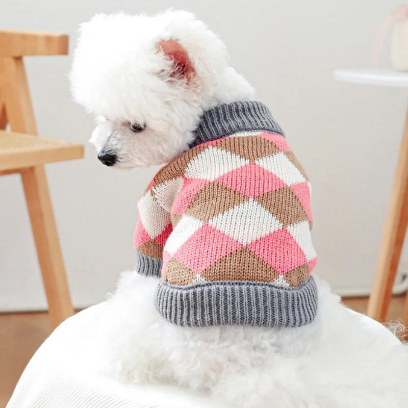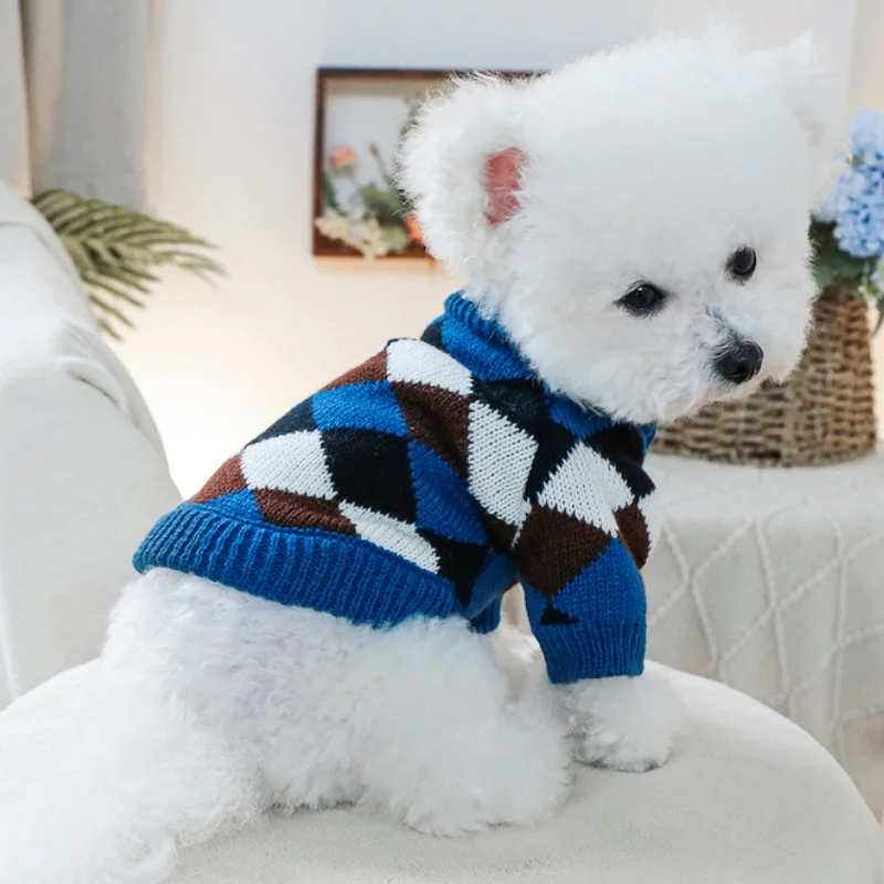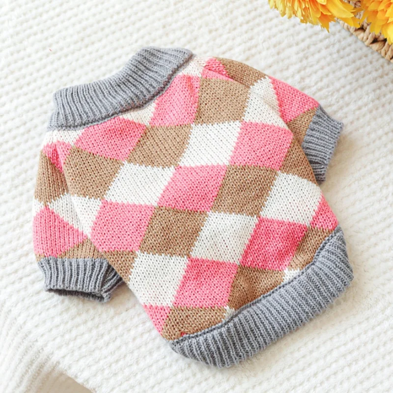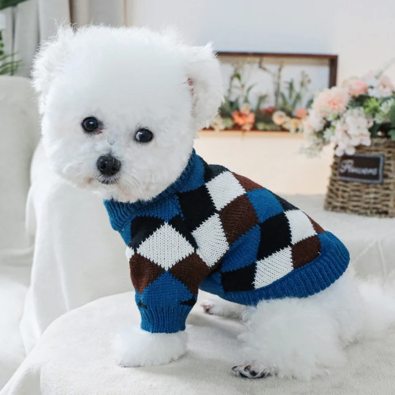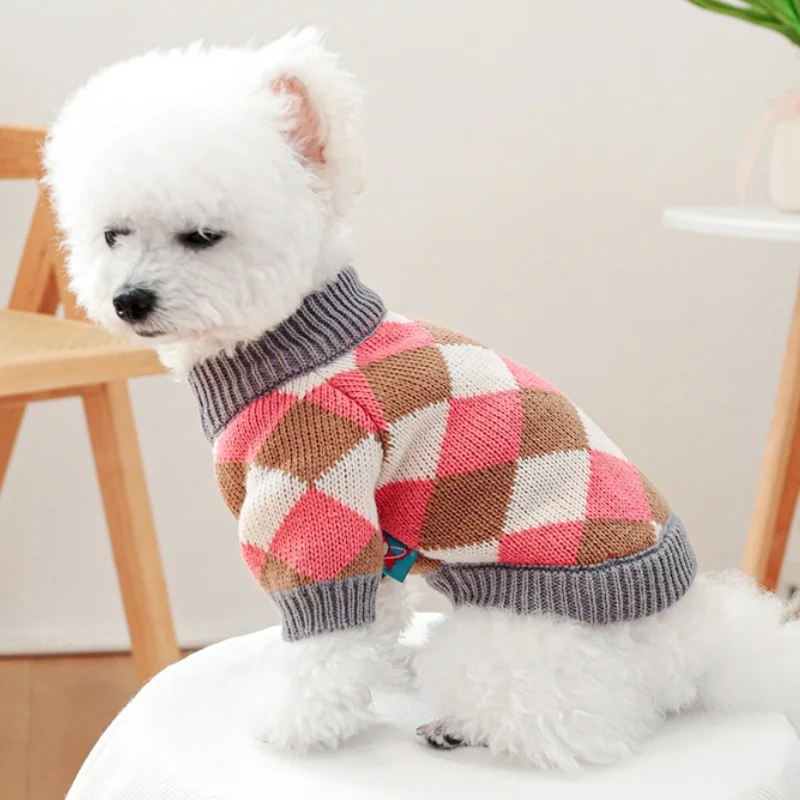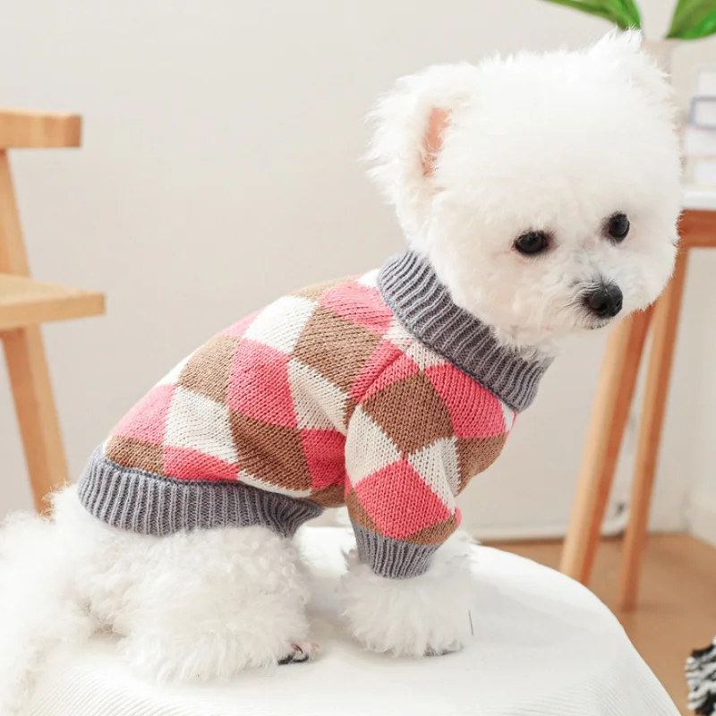 Ropa de punto para perros de invierno, suéter suave y cálido para perros, cuello alto con estampado de lujo para cachorros, suéter bonito a cuadros para gatos, jerséis para mascotas, suministros para perros