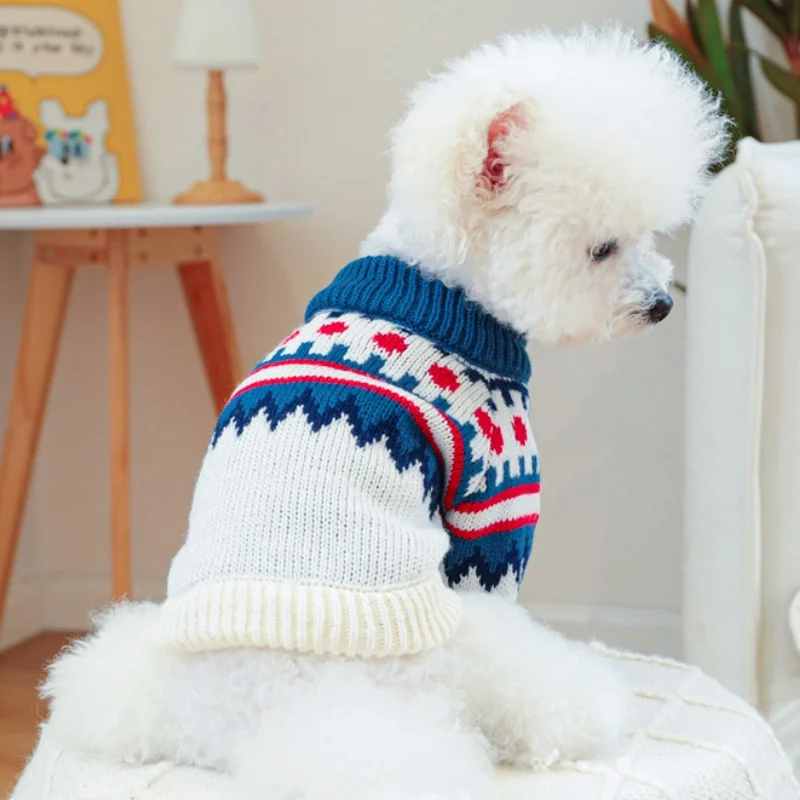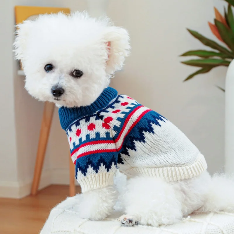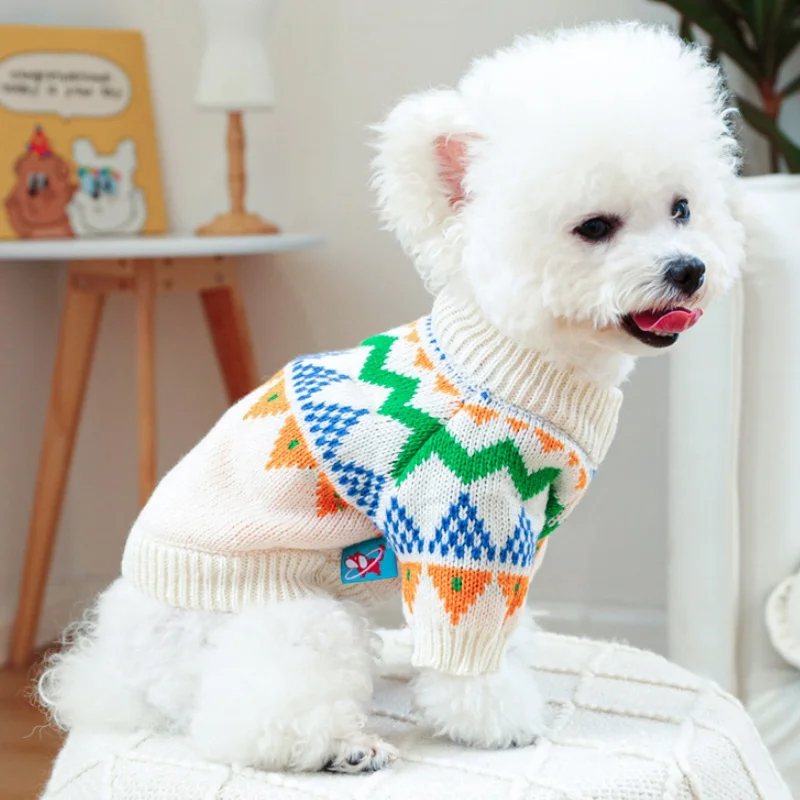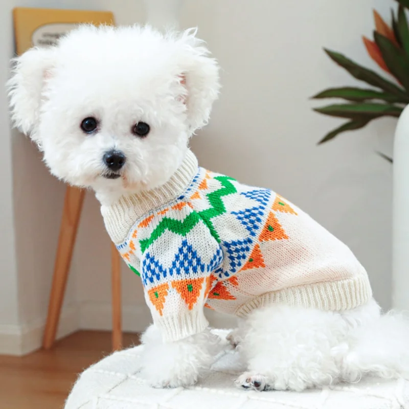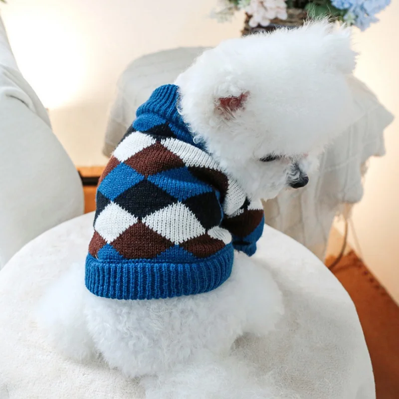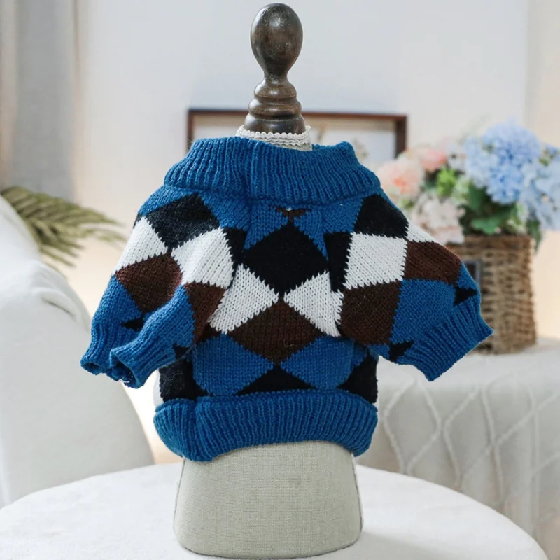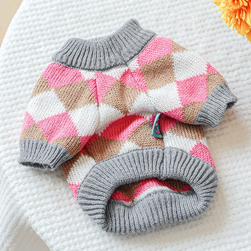 Ropa de punto para perros de invierno, suéter suave y cálido para perros, cuello alto con estampado de lujo para cachorros, suéter bonito a cuadros para gatos, jerséis para mascotas, suministros para perros