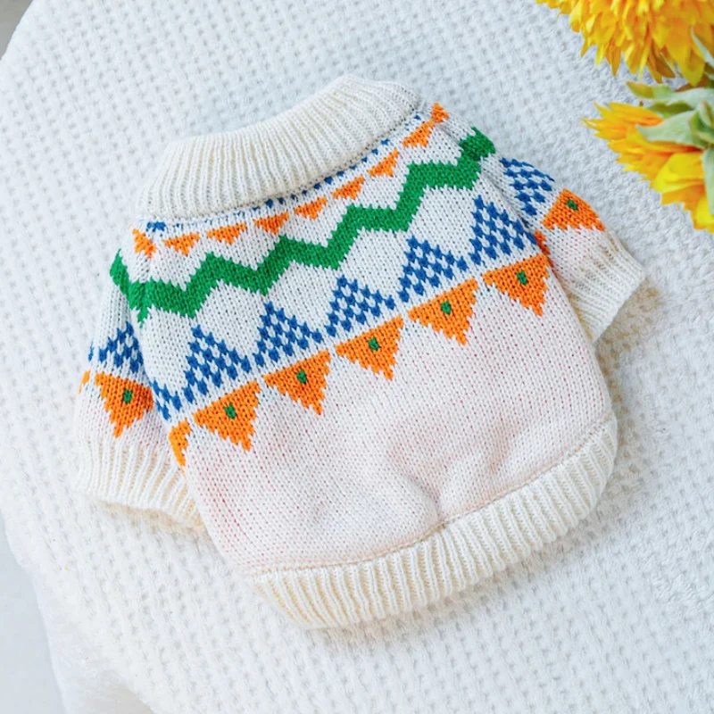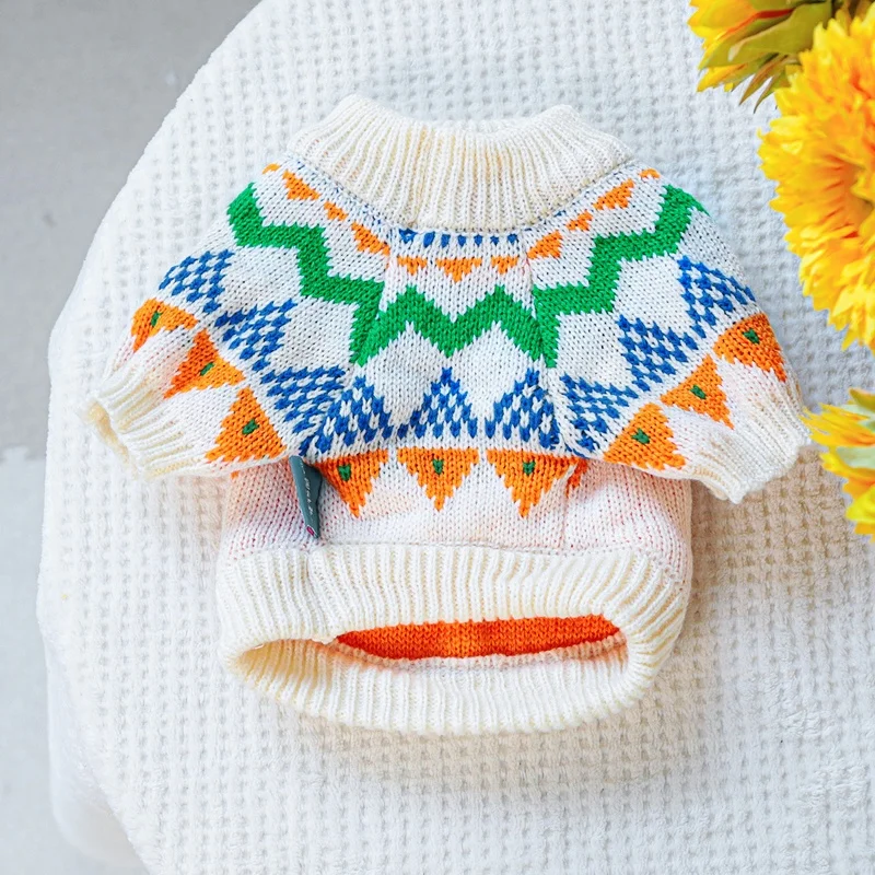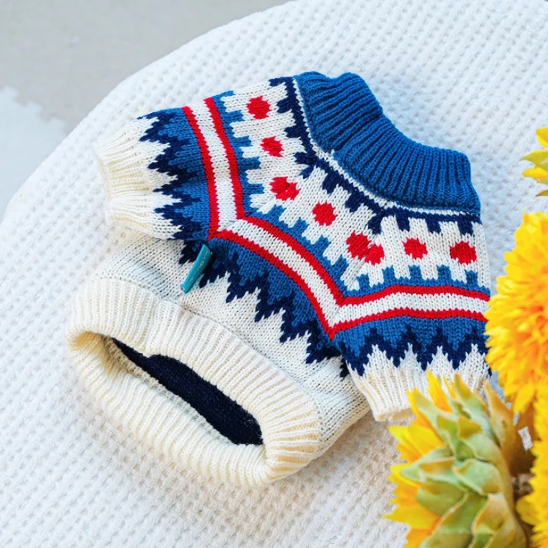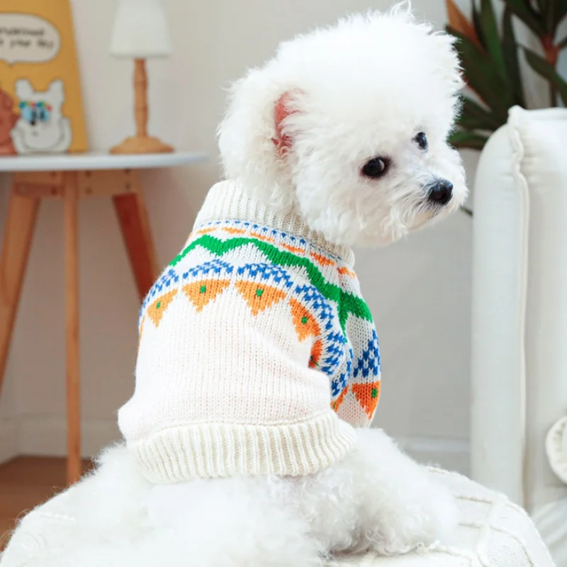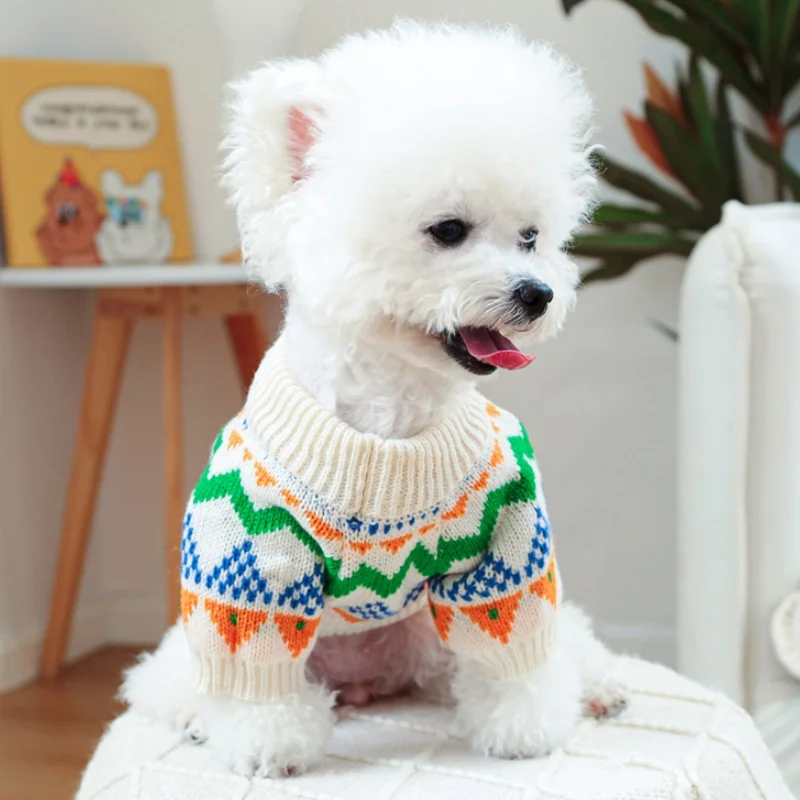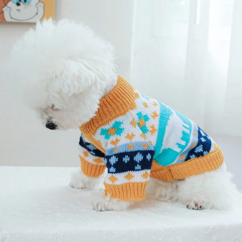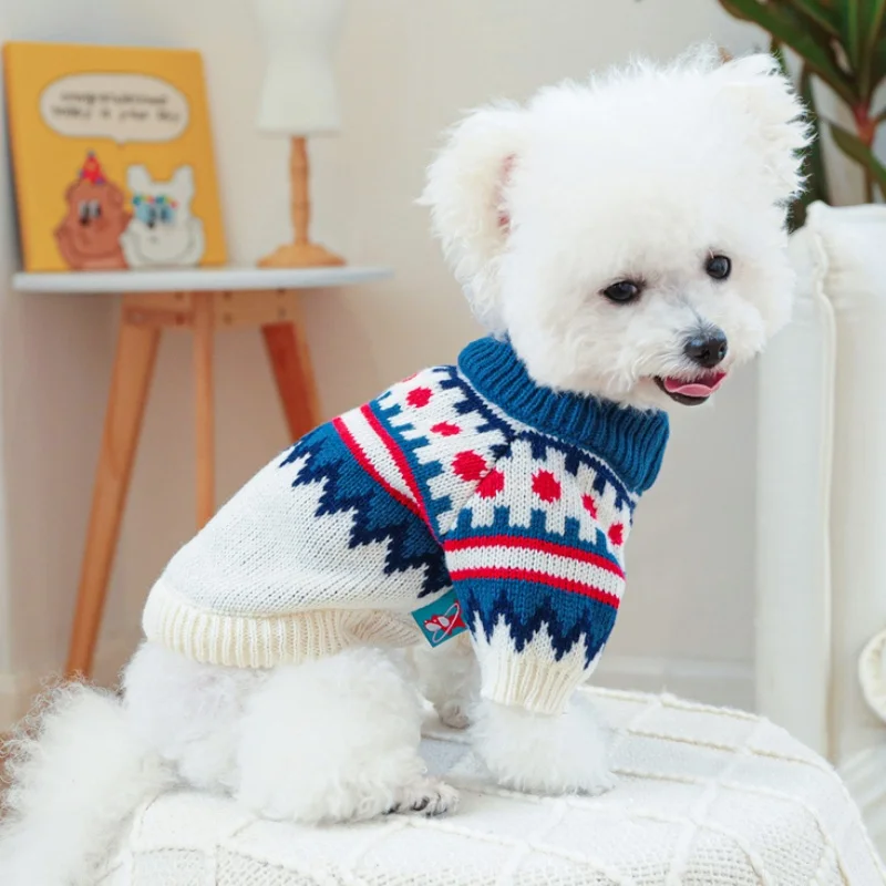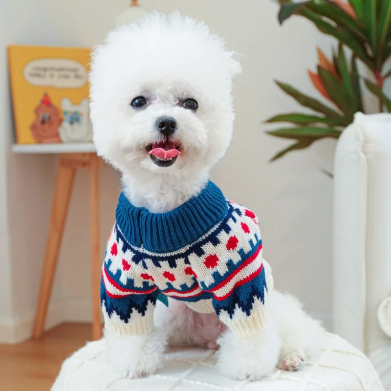 Ropa de punto para perros de invierno, suéter suave y cálido para perros, cuello alto con estampado de lujo para cachorros, suéter bonito a cuadros para gatos, jerséis para mascotas, suministros para perros
