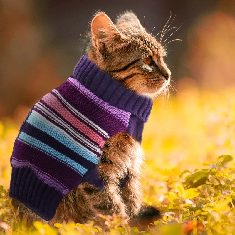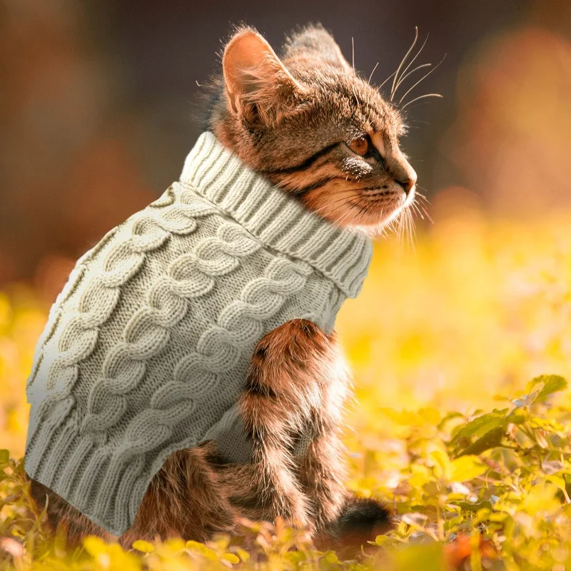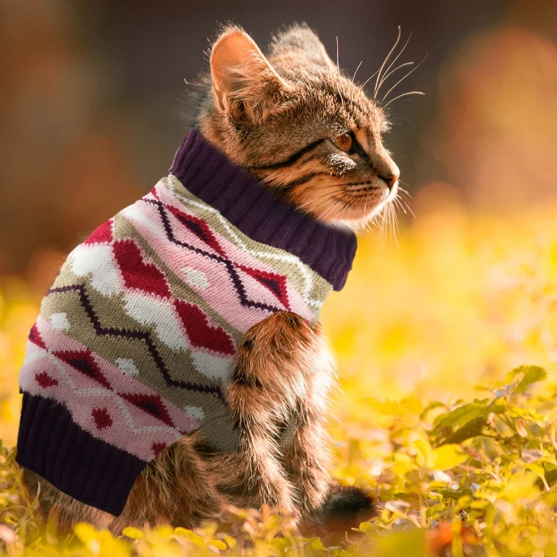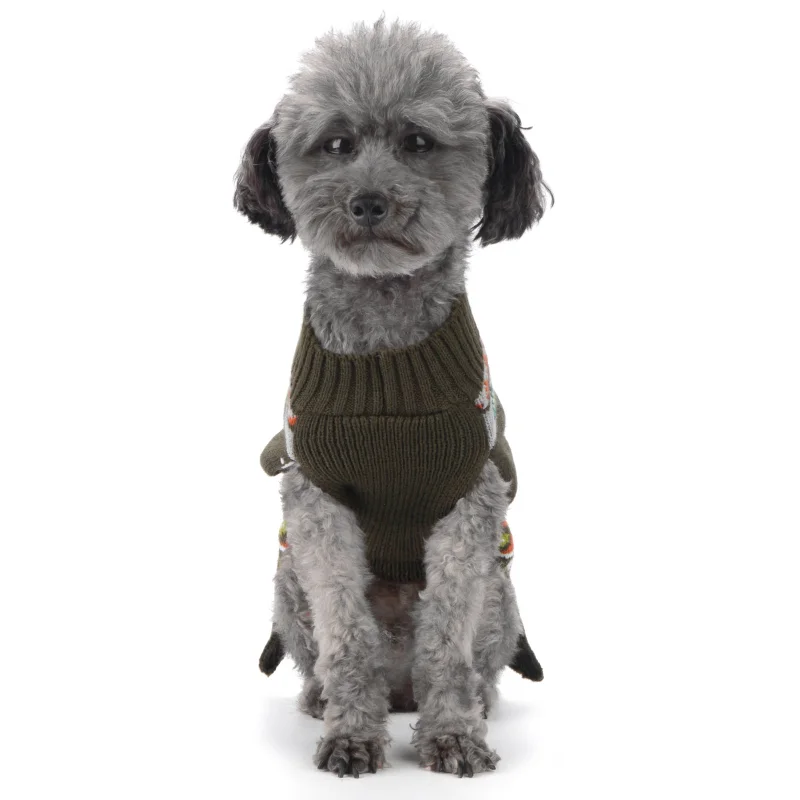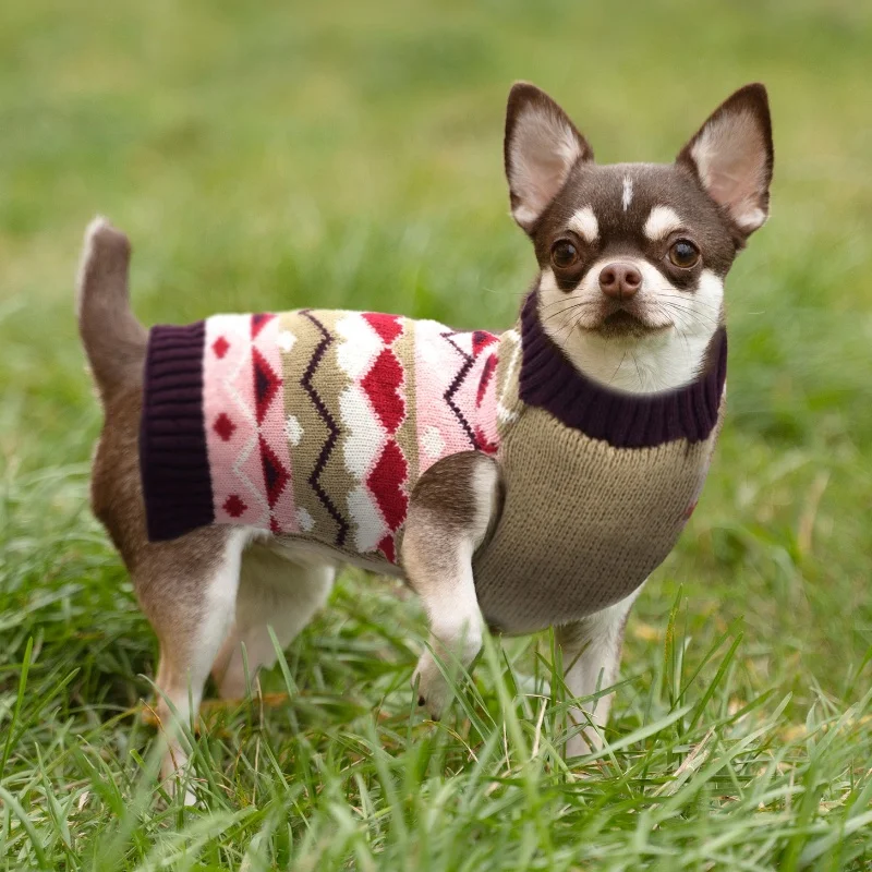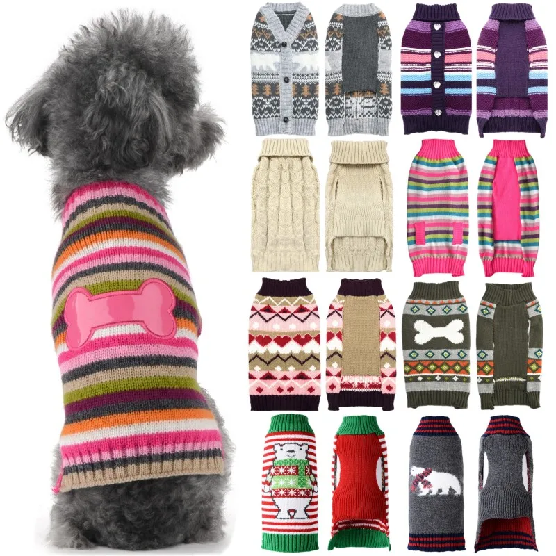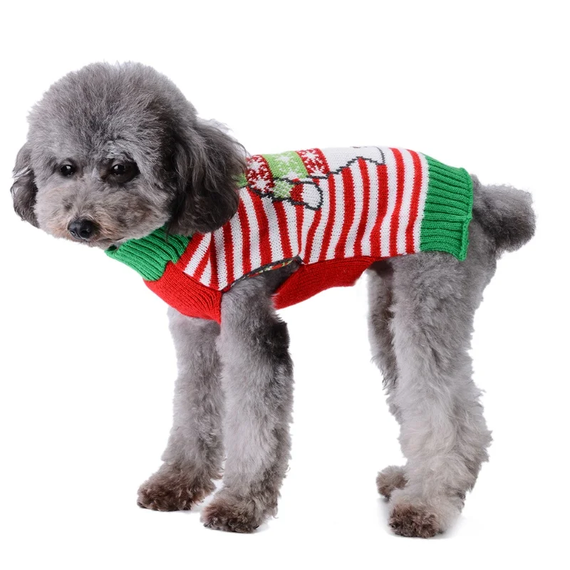 Ropa de punto para perros a la moda, suéter cálido de invierno para perros, disfraces de cachorro de Navidad, cuello alto con estampado bonito, jerséis para mascotas de Chihuahua