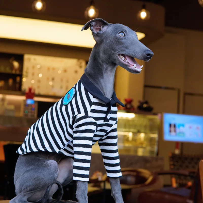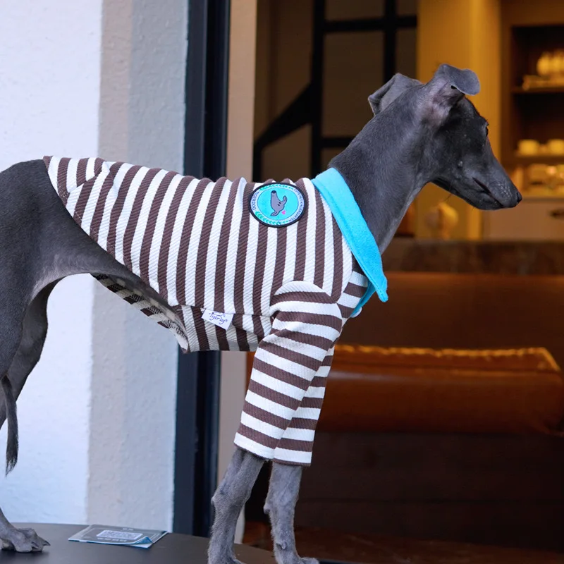 Ropa italiana a rayas de 2 patas, ropa tipo Polo Whippet elástica suave a la moda, pijamas de algodón cálidos para otoño para perros