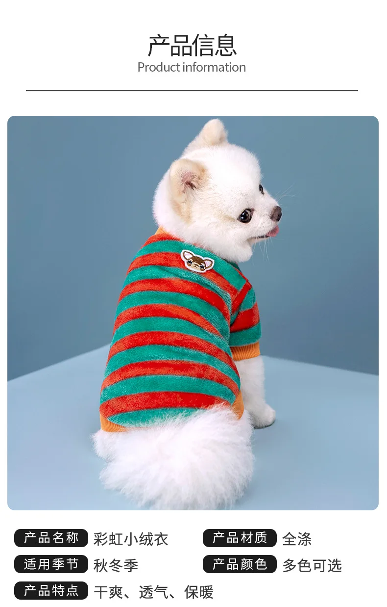 Ropa a rayas de arcoíris para mascotas, lindo y cálido Teddy Cat, suministros para perros, Sudadera con capucha para perros, disfraz Schnauzer, Otoño e Invierno