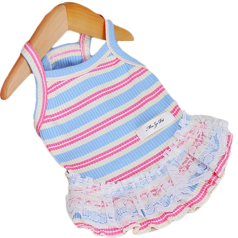 Vestido de perro a rayas, ropa de verano con tirantes de encaje, ropa para mascotas y gatos, falda con tirantes colorida para cachorro, ropa de verano para niñas, vestidos para perros