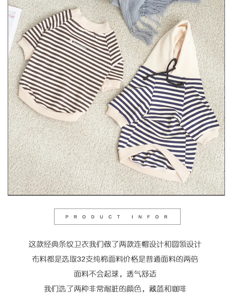 Ropa a rayas para perros y gatos, suéter con capucha para cachorros pequeños de sección delgada para primavera y verano, ropa para perros pequeños