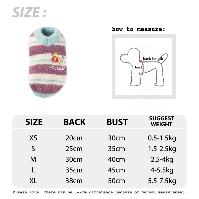Ropa de rayas románticas para perros pequeños, suéter de lana suave con estampado de flores para mascotas y gatos, ropa transpirable para cachorros de Chihuahua maltés