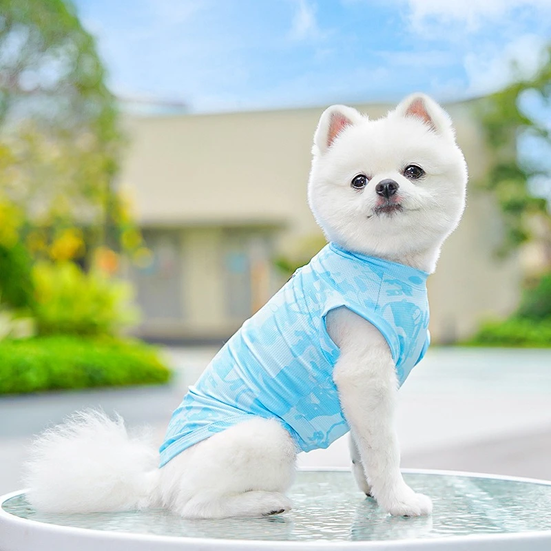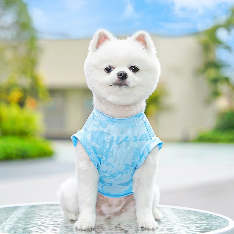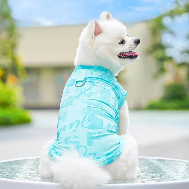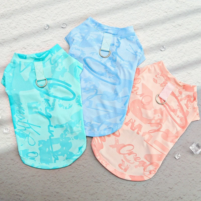 Ropa refrescante de seda de hielo para cachorros, ropa de verano para perros pequeños y medianos, mono ligero con estampado de gato, protección UV, camiseta de Bulldog Francés
