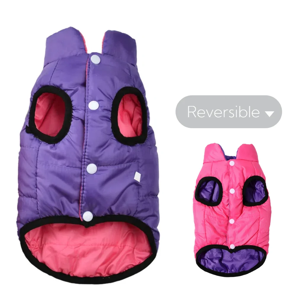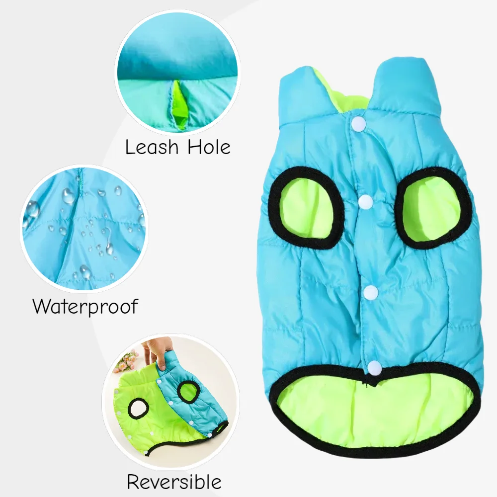 Ropa reversible de invierno para gatos con funda para mascotas a prueba de viento con orificio para correa