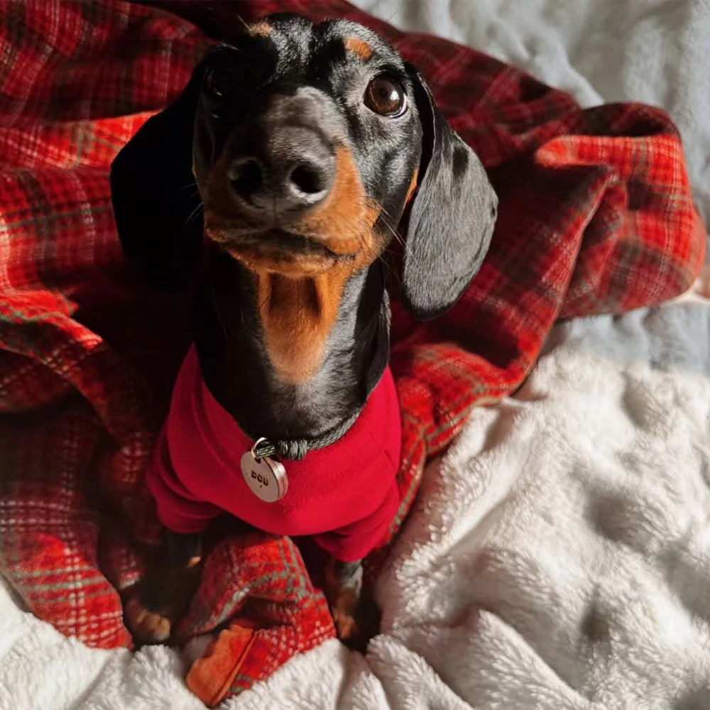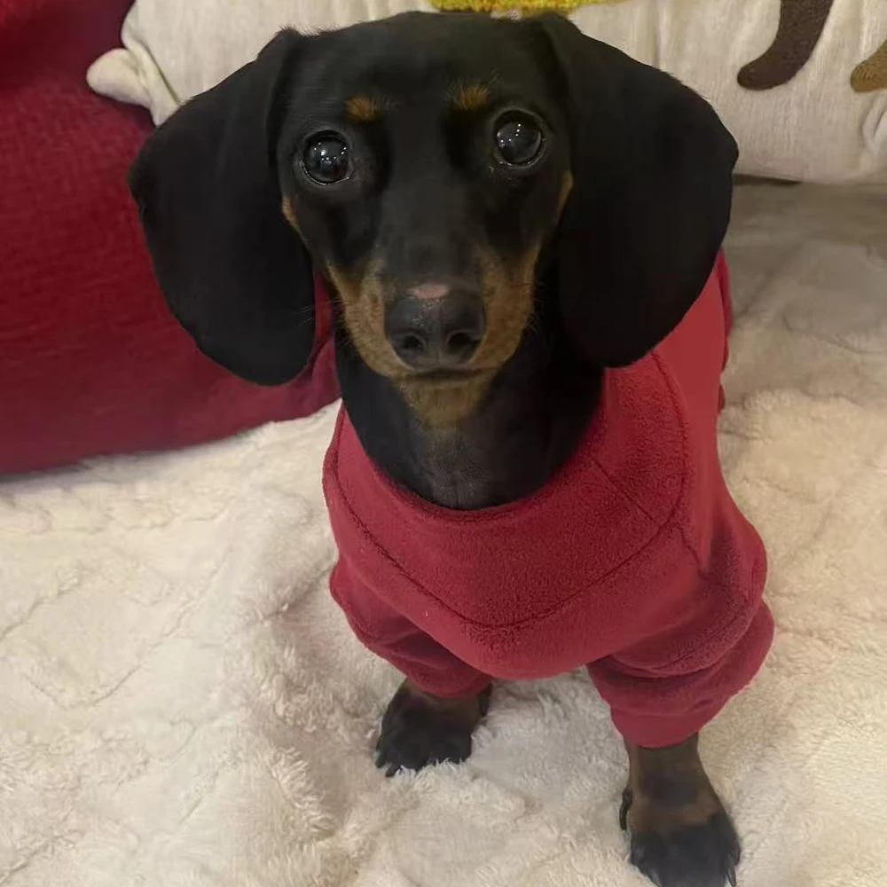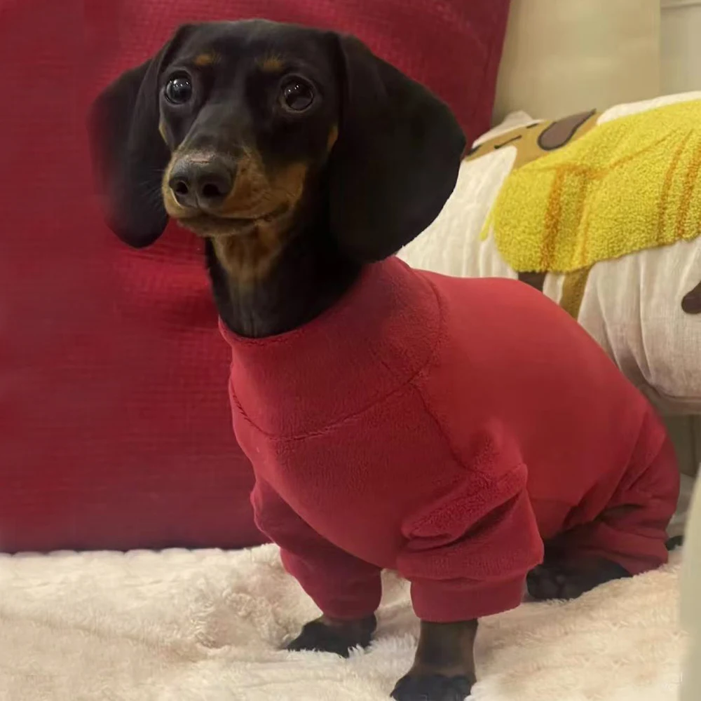 Ropa roja para mujer, mono de lana gruesa roja con Dachshund en miniatura para perro Wiener, abrigo cálido de invierno para disfraces de perro de tejón