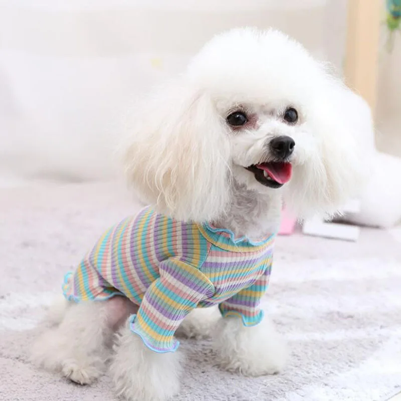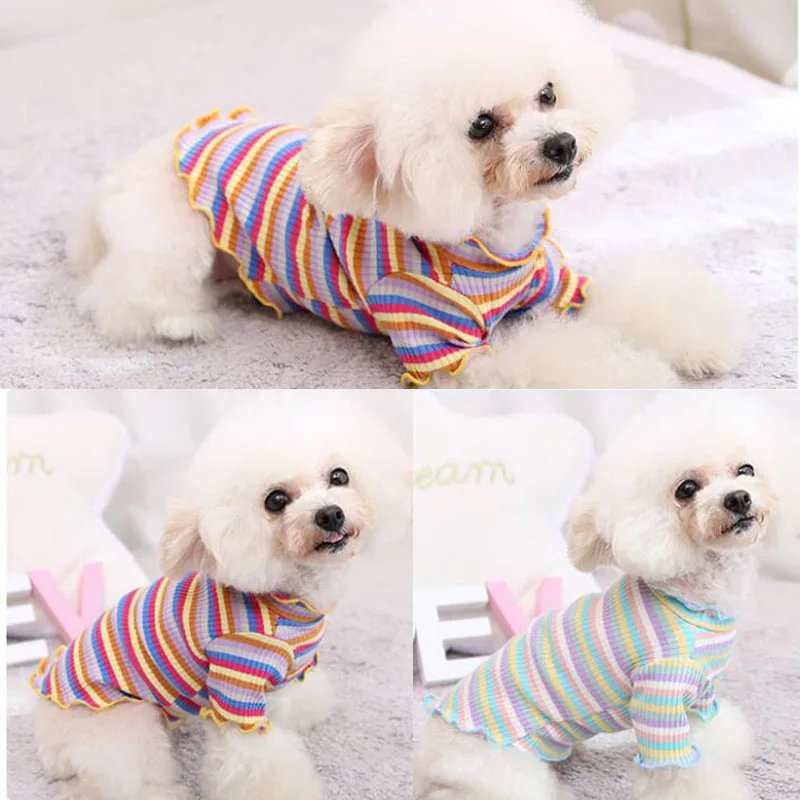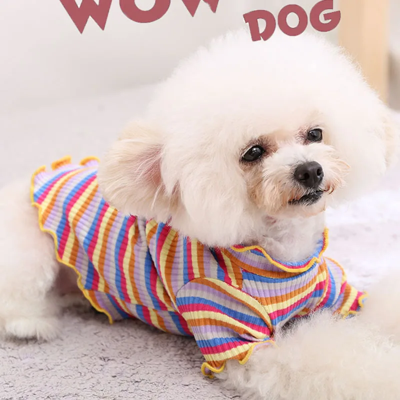 Sudadera con capucha roja Primavera Verano ropa de punto para mascotas Sudadera con capucha para perros Bulldog francés Pug Rainbow Puppy ropa camisa de fondo