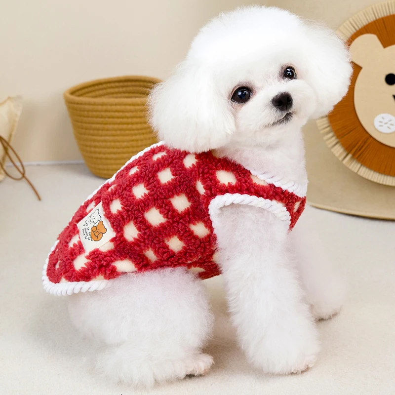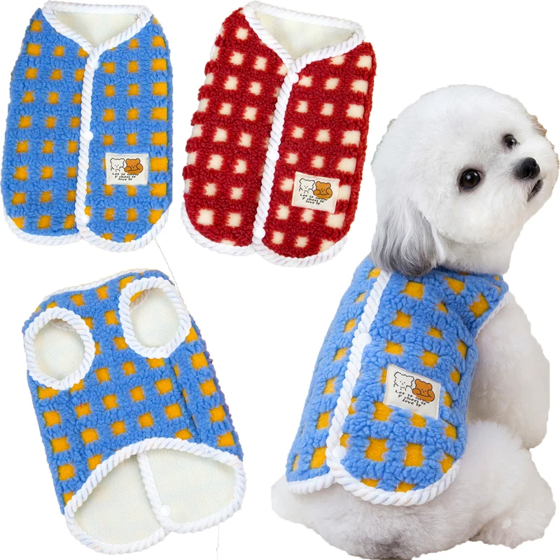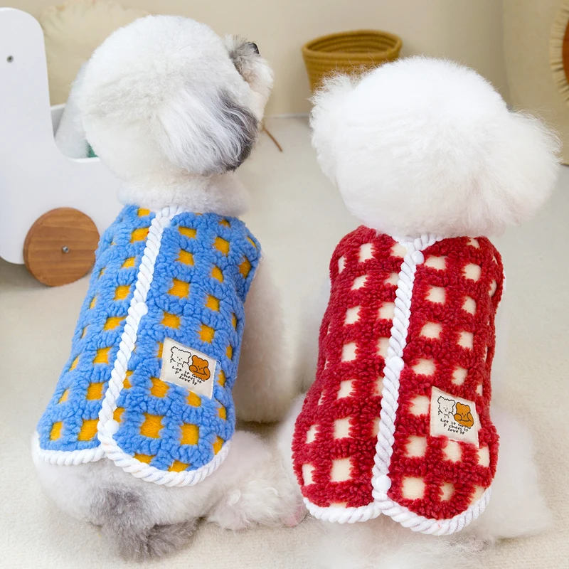 Ropa para perros roja y azul, abrigo de invierno cálido y barato para perros pequeños, chaqueta sin mangas para cachorros de Yorkshire Chiwawa, trajes