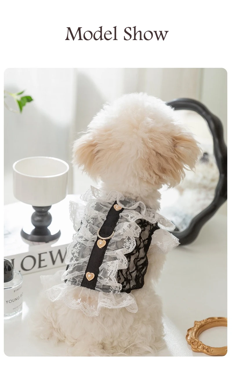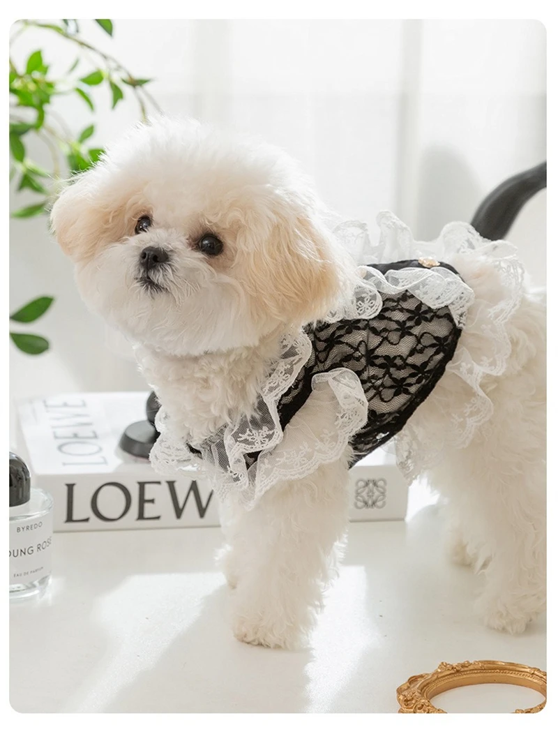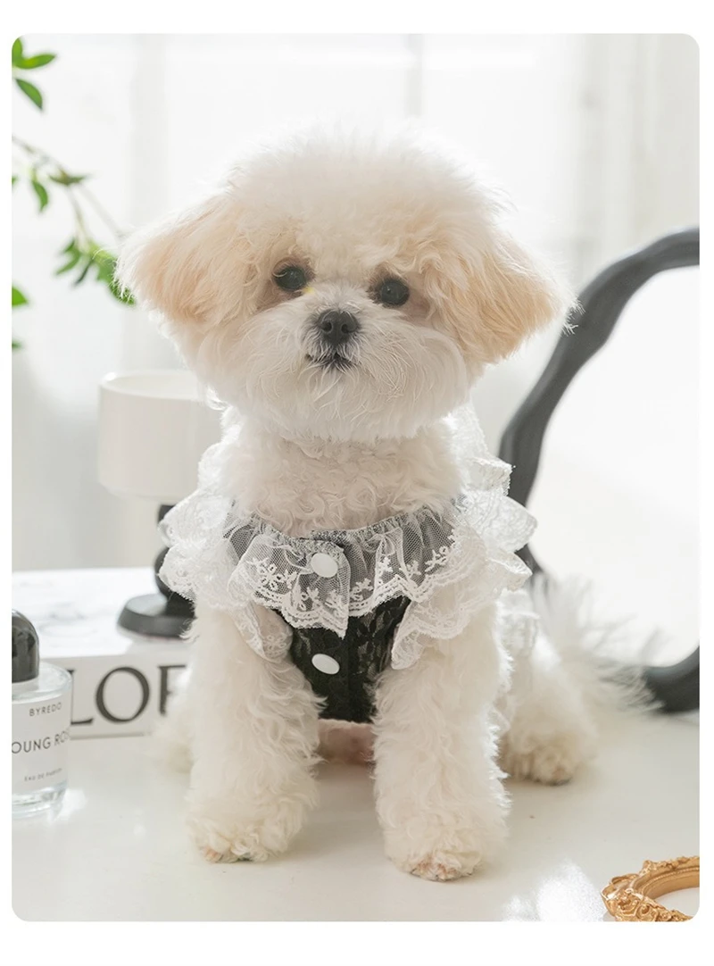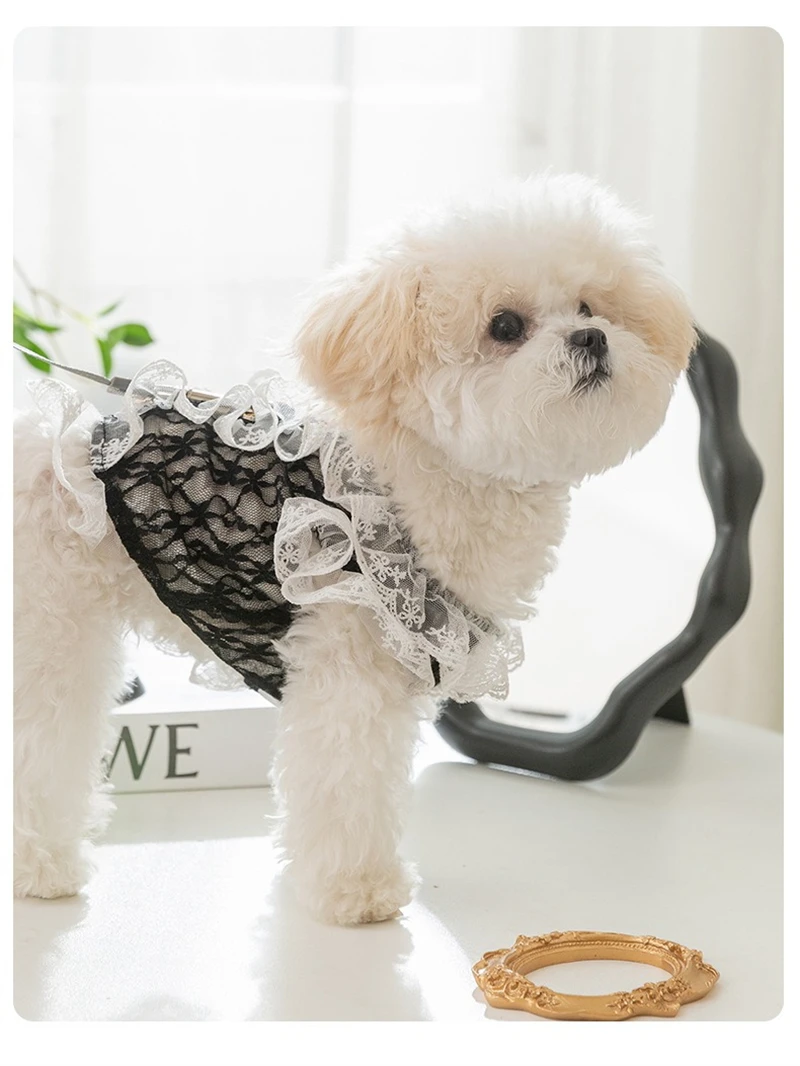 Ropa Sexy de encaje para cachorros, chaleco corto de princesa de tul transpirable para perros pequeños y medianos, falda personalizada con forma de corazón y gato de circón