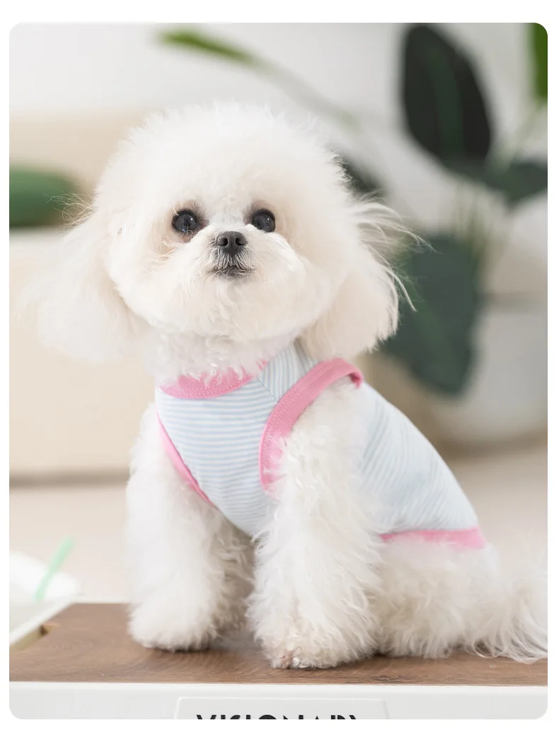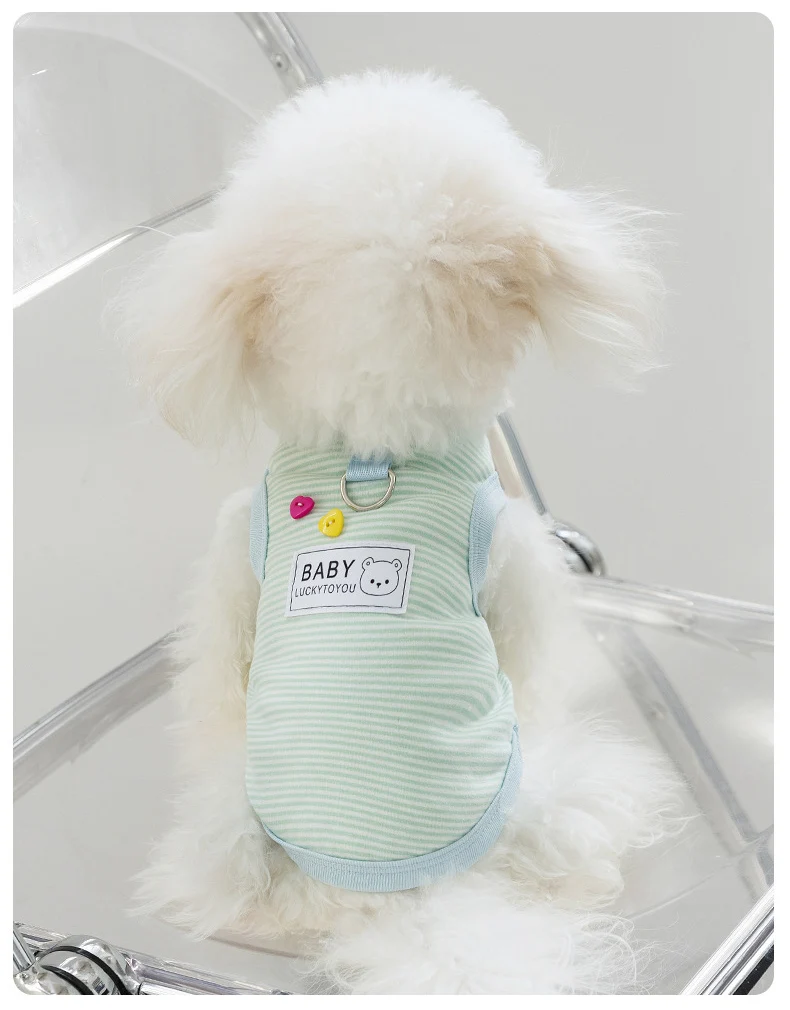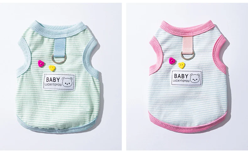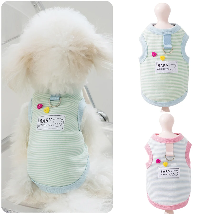 Ropa sin mangas para cachorros con anillo de correa, Camisa de algodón suave para perros pequeños, niñas y niños, ropa de Yorkies a rayas, camiseta sin mangas, chaleco