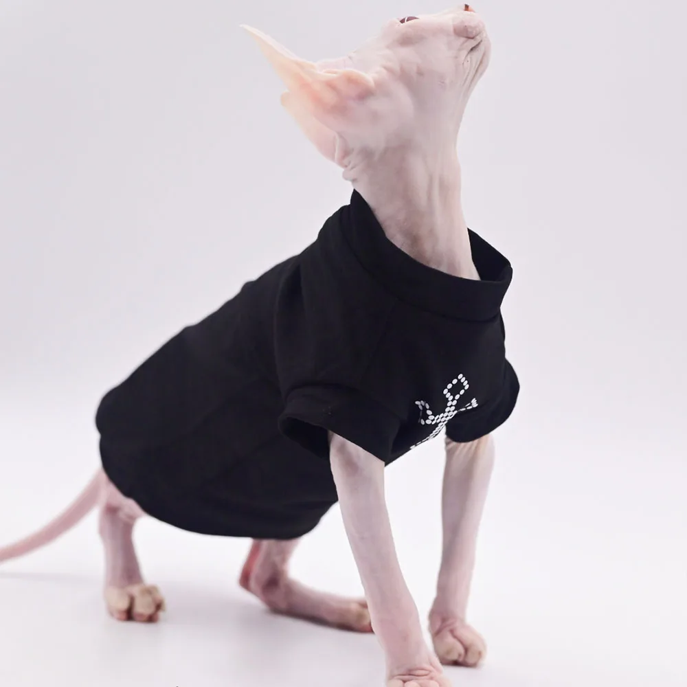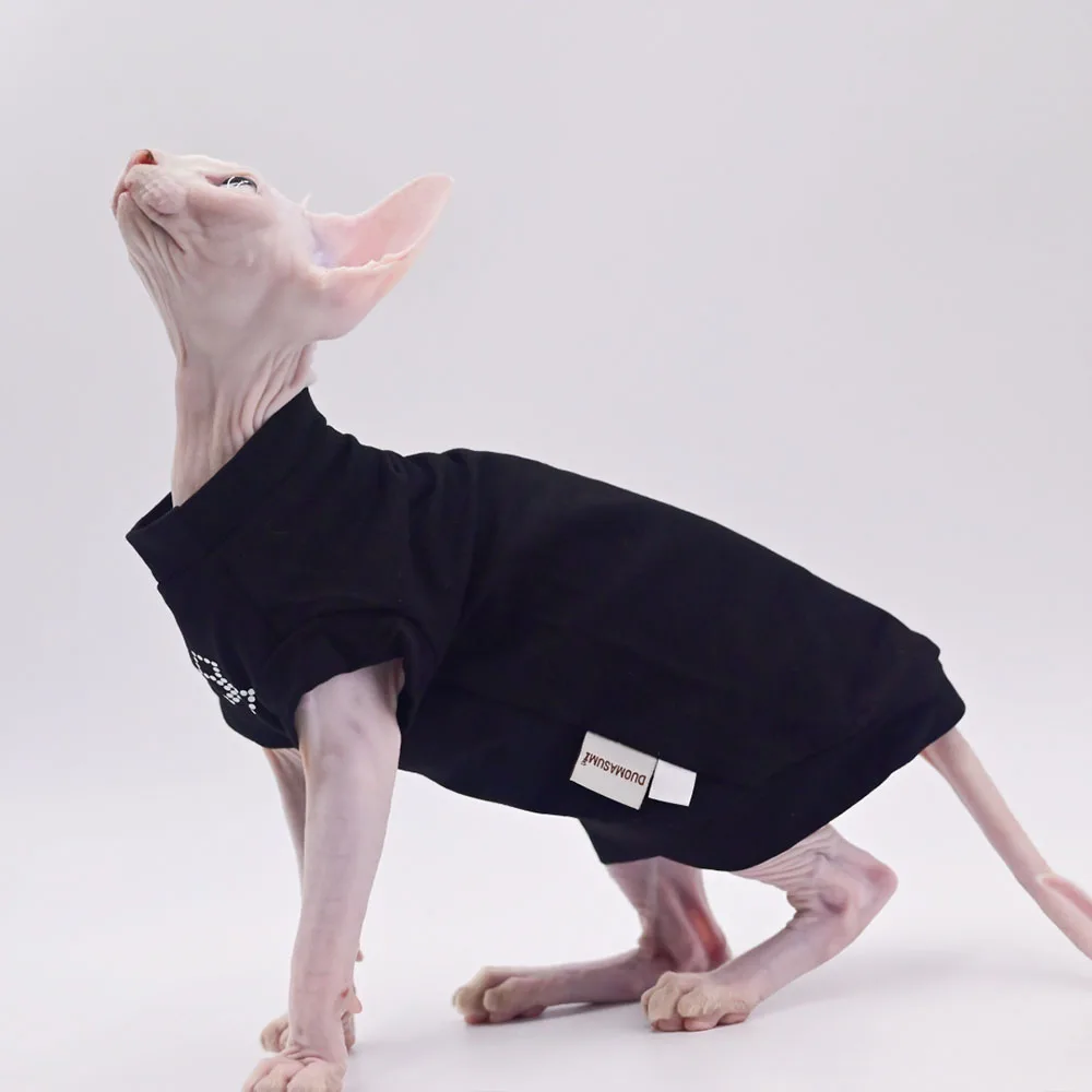 Ropa sin pelo para gato, Deven esfinge, camiseta negra suave y transpirable, ropa para mascotas, camisa para perros pequeños, ropa para gatos