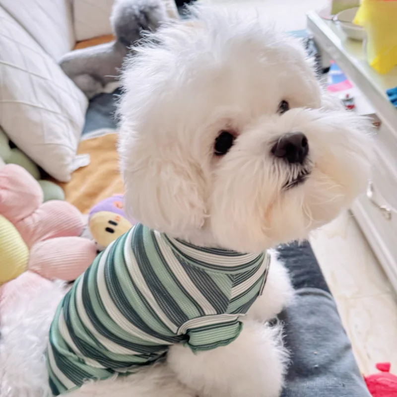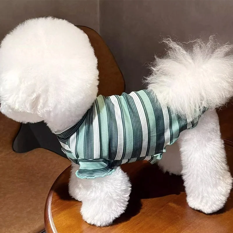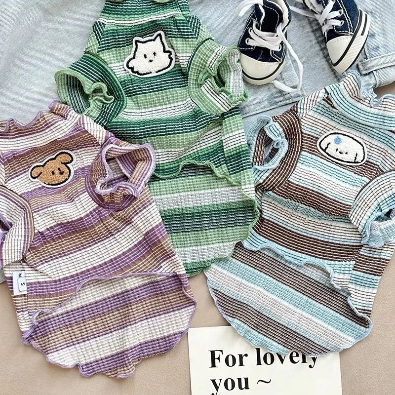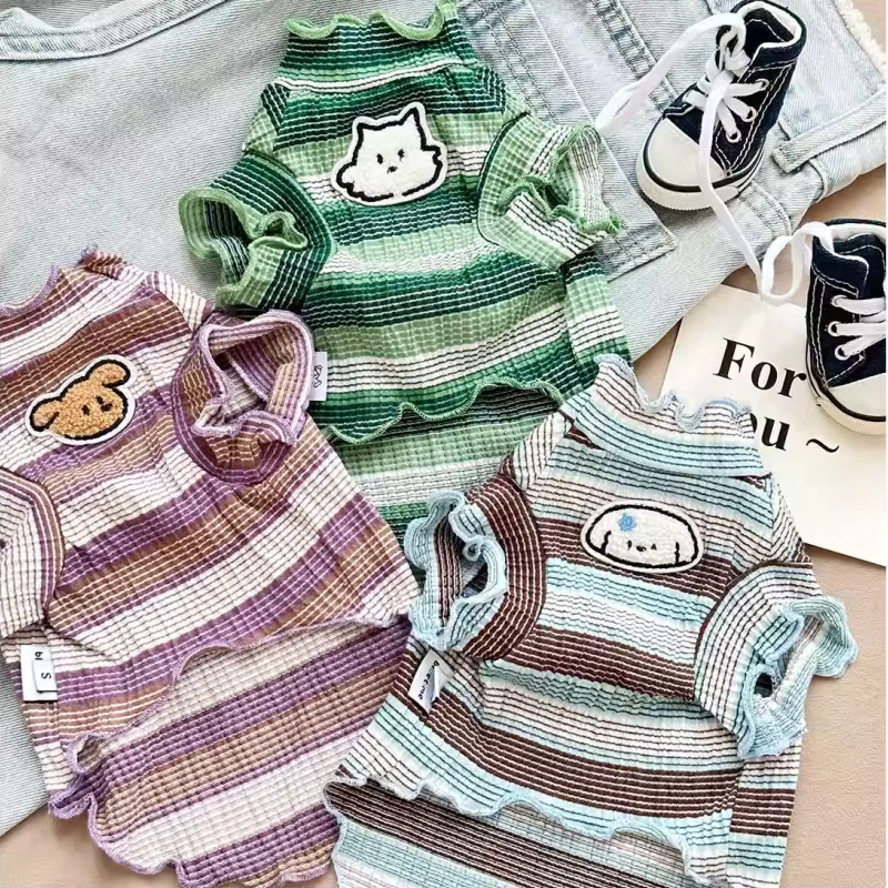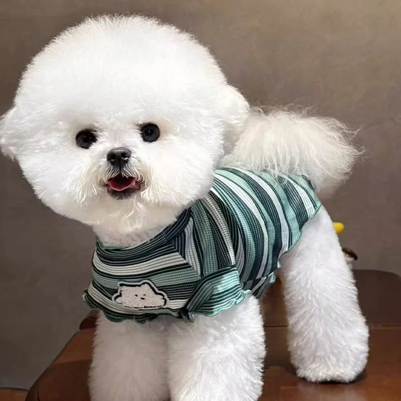 Ropa suave de otoño para perros, camisa a rayas a la moda para perros, jerséis bonitos de encaje para cachorros, camiseta con fondo de gato, chaleco para mascotas, trajes Bichon de caniche