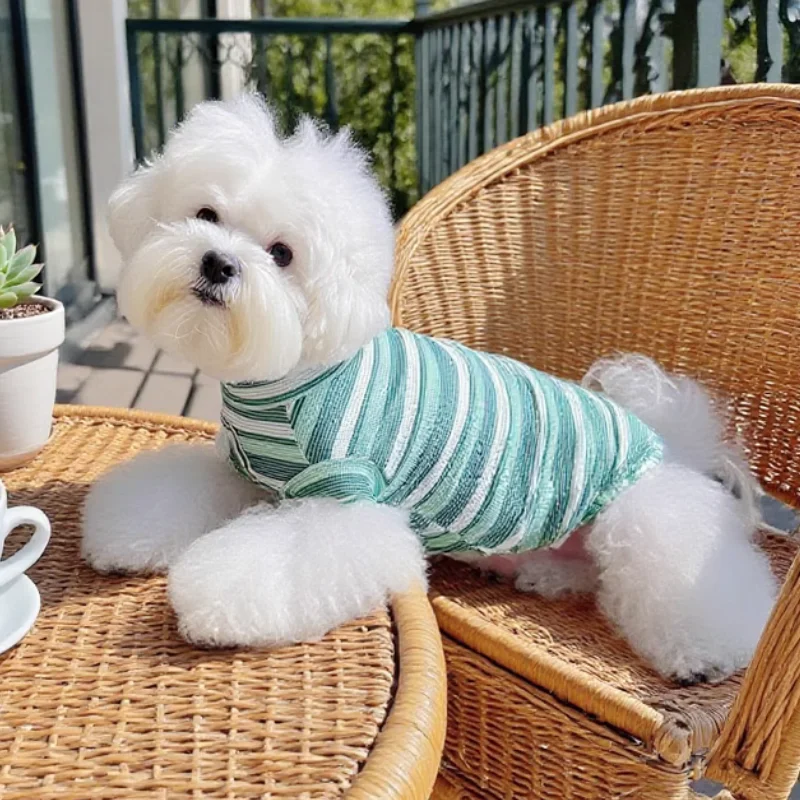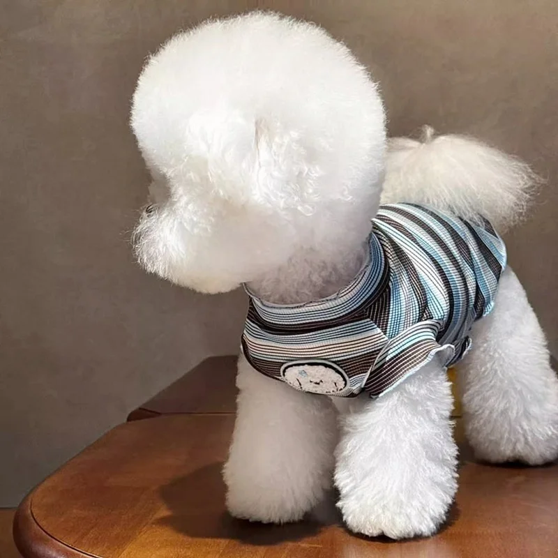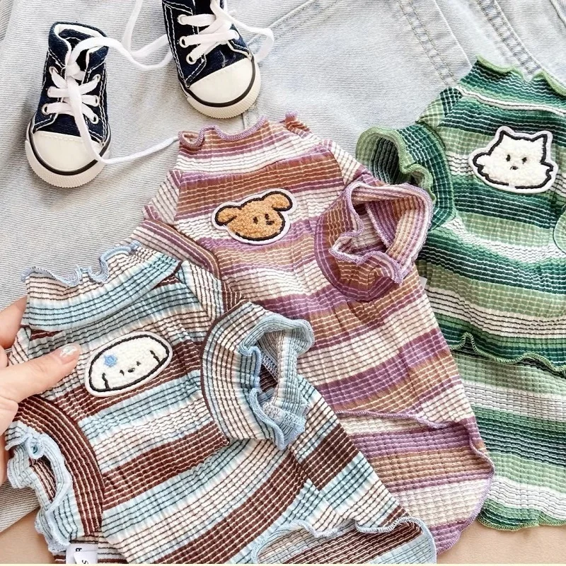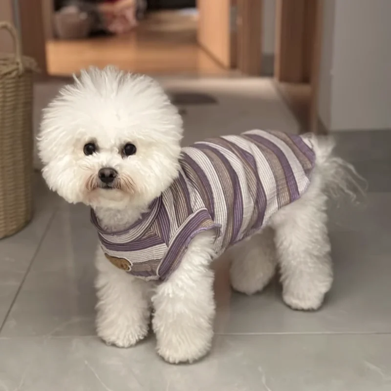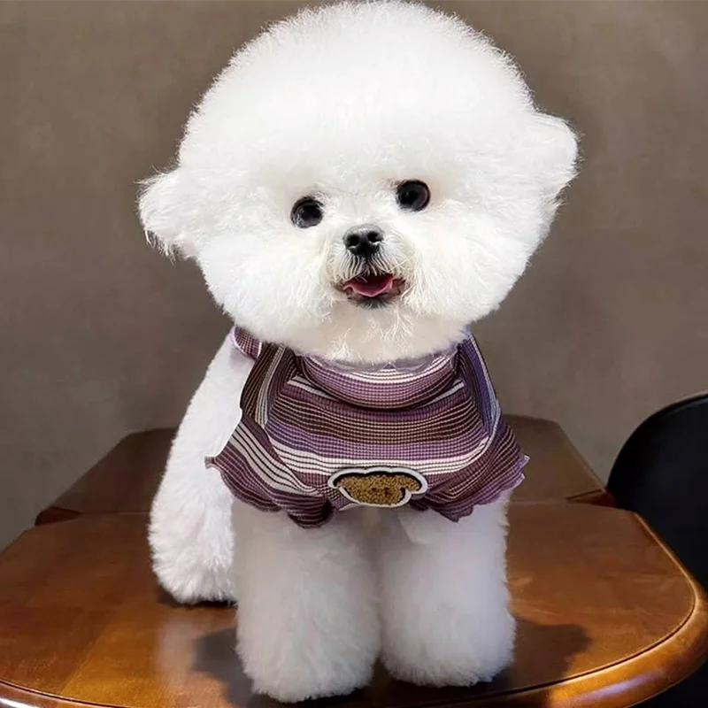 Ropa suave de otoño para perros, camisa a rayas a la moda para perros, jerséis bonitos de encaje para cachorros, camiseta con fondo de gato, chaleco para mascotas, trajes Bichon de caniche
