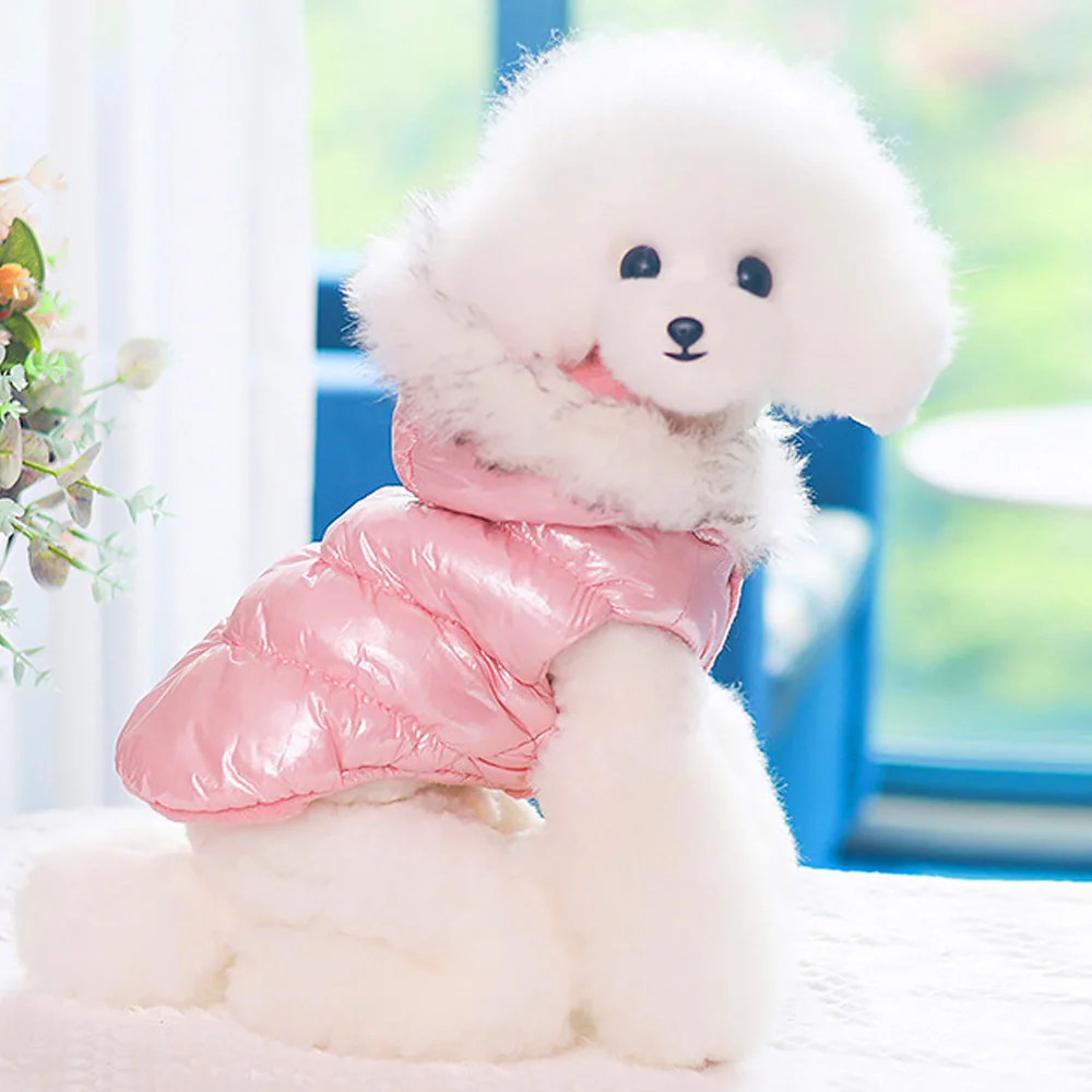 Ropa para perros súper cálida, impermeable, con capucha para perros de invierno, chaqueta para mascotas, ropa, abrigo a prueba de viento con piel para perros pequeños y medianos, PugTipo: ropa impermeable de invierno para perros