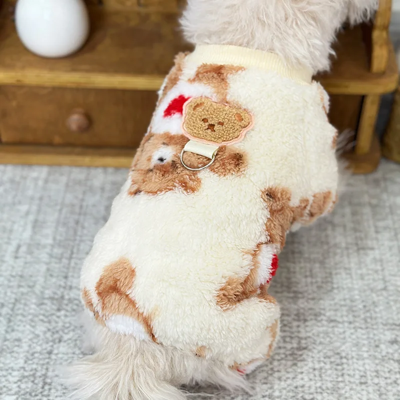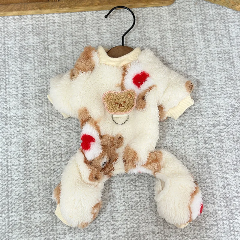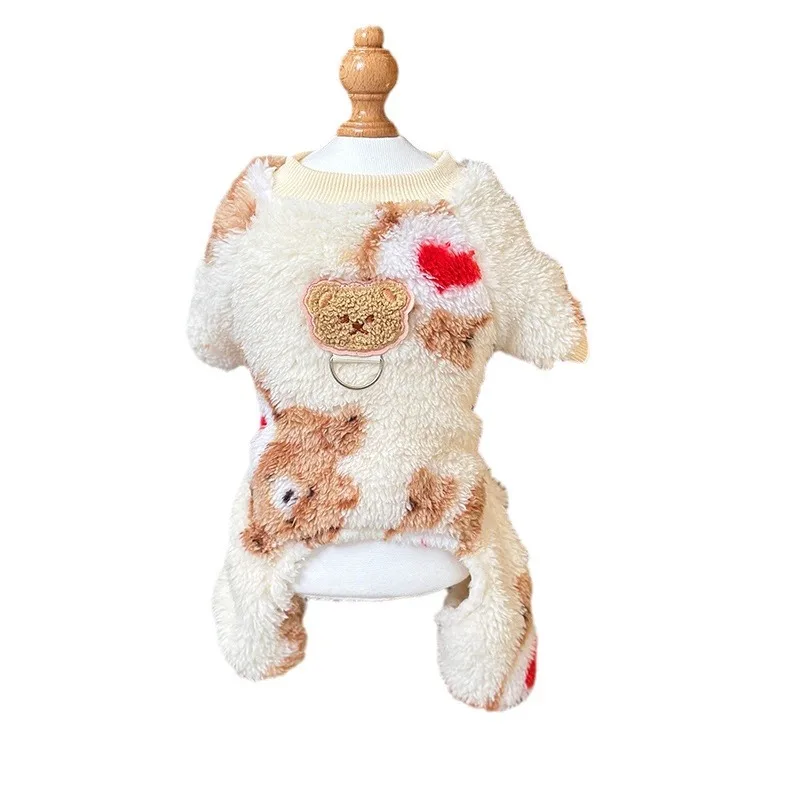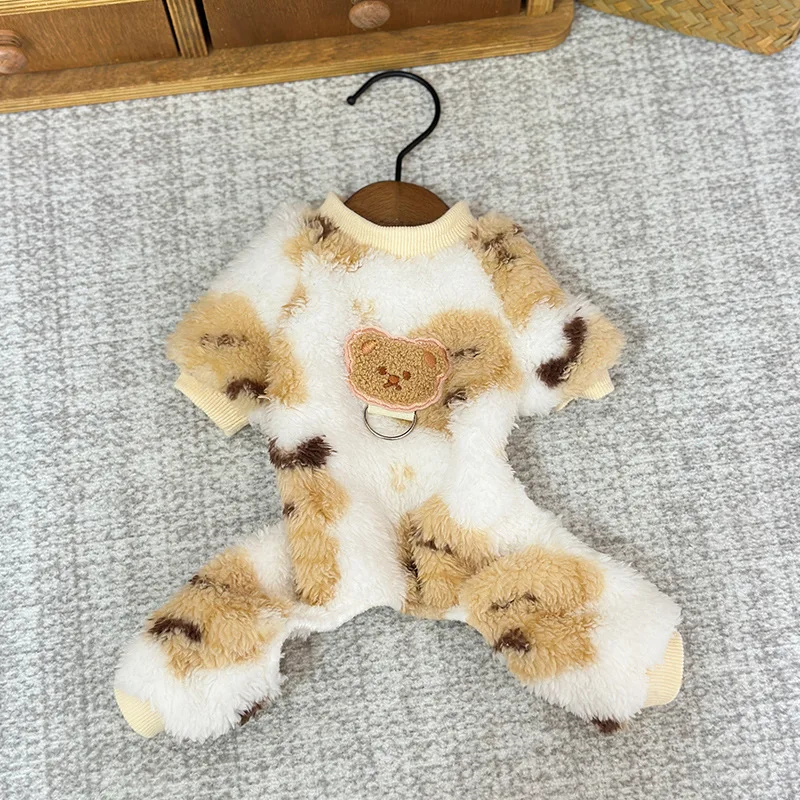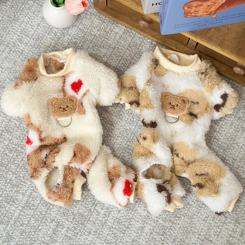 Ropa de terciopelo de Coral engrosada de cuatro patas, oso de peluche, ropa de abrigo para perros pequeños, ropa para cachorros, otoño e invierno, nuevo