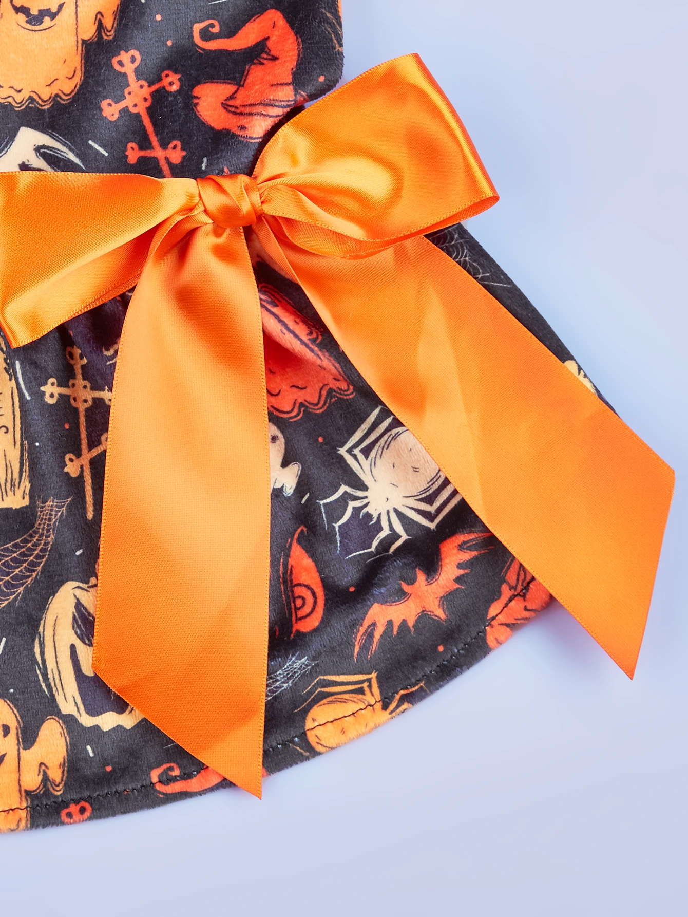 Ropa de terciopelo ligera para Halloween, disfraz de perro, vestido de cachorro, fiesta de perrito, niña, una pieza con lazo, trajes de gato de vacaciones, negro