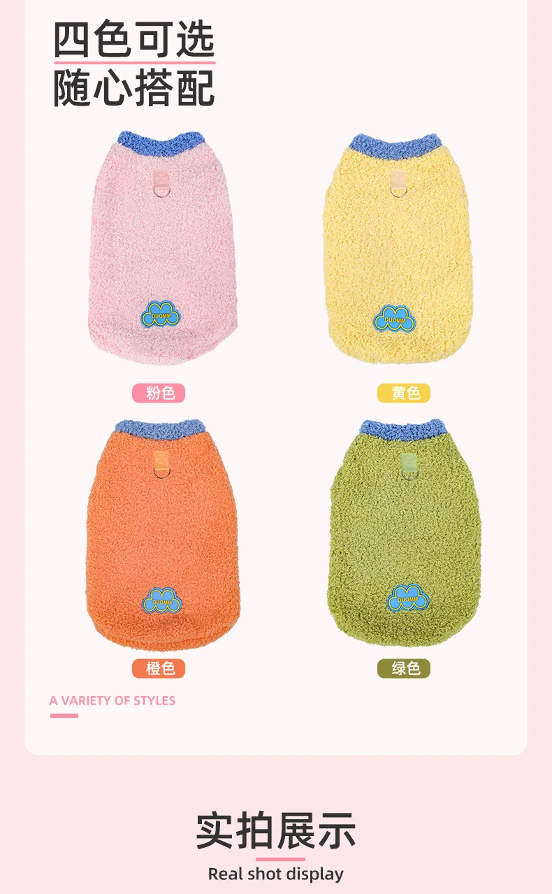 Ropa de terciopelo para mascotas, chaleco de terciopelo, jersey de otoño e invierno, ropa para perros y gatos
