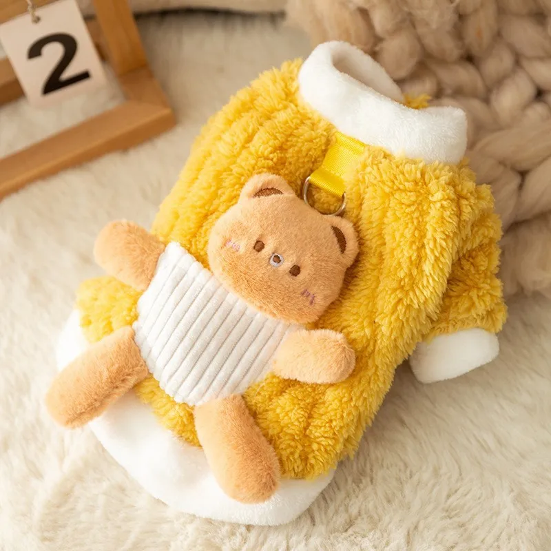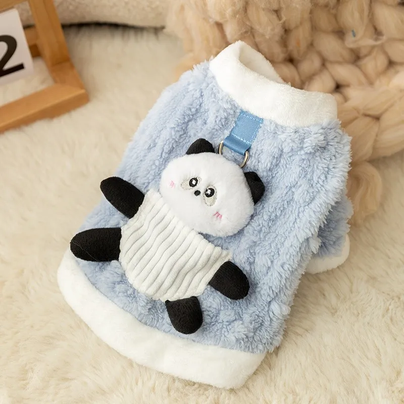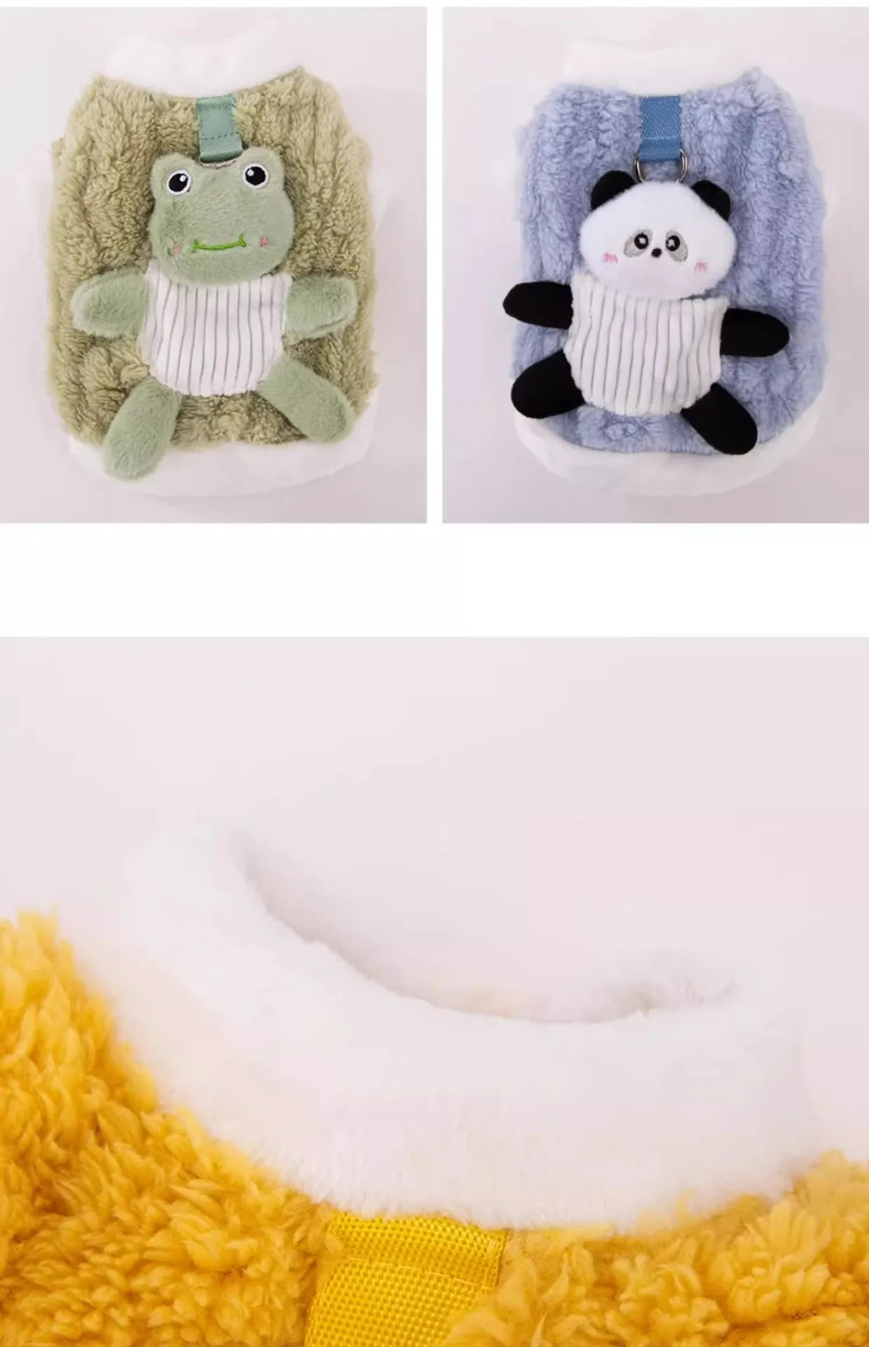 Ropa de terciopelo de dos piernas con dibujos animados para perros, Sudadera con capucha para perros y gatos pequeños y medianos, ropa para mascotas de peluche, ropa para cachorros, otoño e invierno