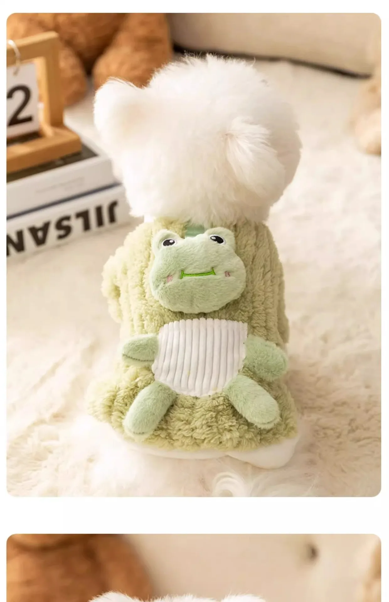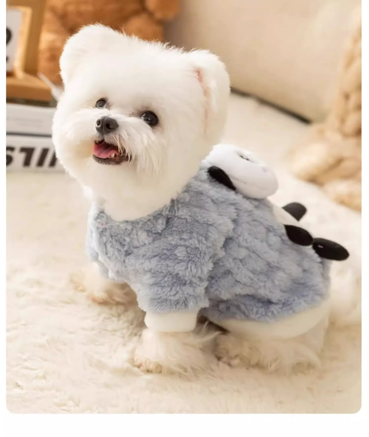 Ropa de terciopelo de dos piernas con dibujos animados para perros, Sudadera con capucha para perros y gatos pequeños y medianos, ropa para mascotas de peluche, ropa para cachorros, otoño e invierno - imagen 1