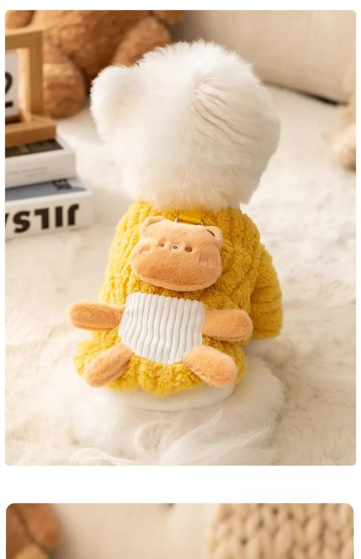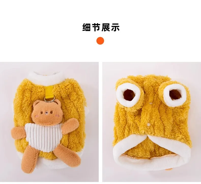 Ropa de terciopelo de dos piernas con dibujos animados para perros, Sudadera con capucha para perros y gatos pequeños y medianos, ropa para mascotas de peluche, ropa para cachorros, otoño e invierno - imagen 4