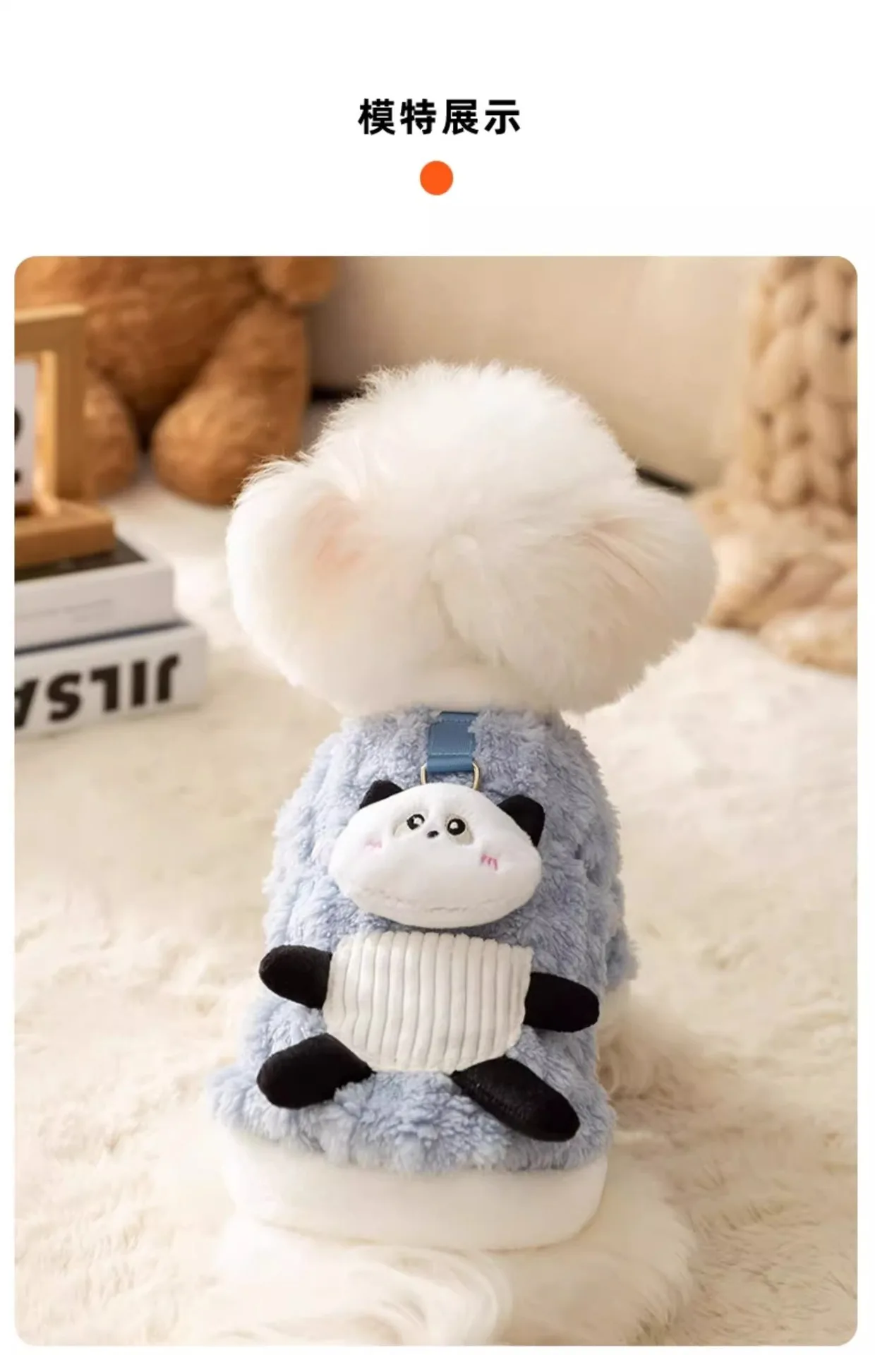 Ropa de terciopelo de dos piernas con dibujos animados para perros, Sudadera con capucha para perros y gatos pequeños y medianos, ropa para mascotas de peluche, ropa para cachorros, otoño e invierno - imagen 3