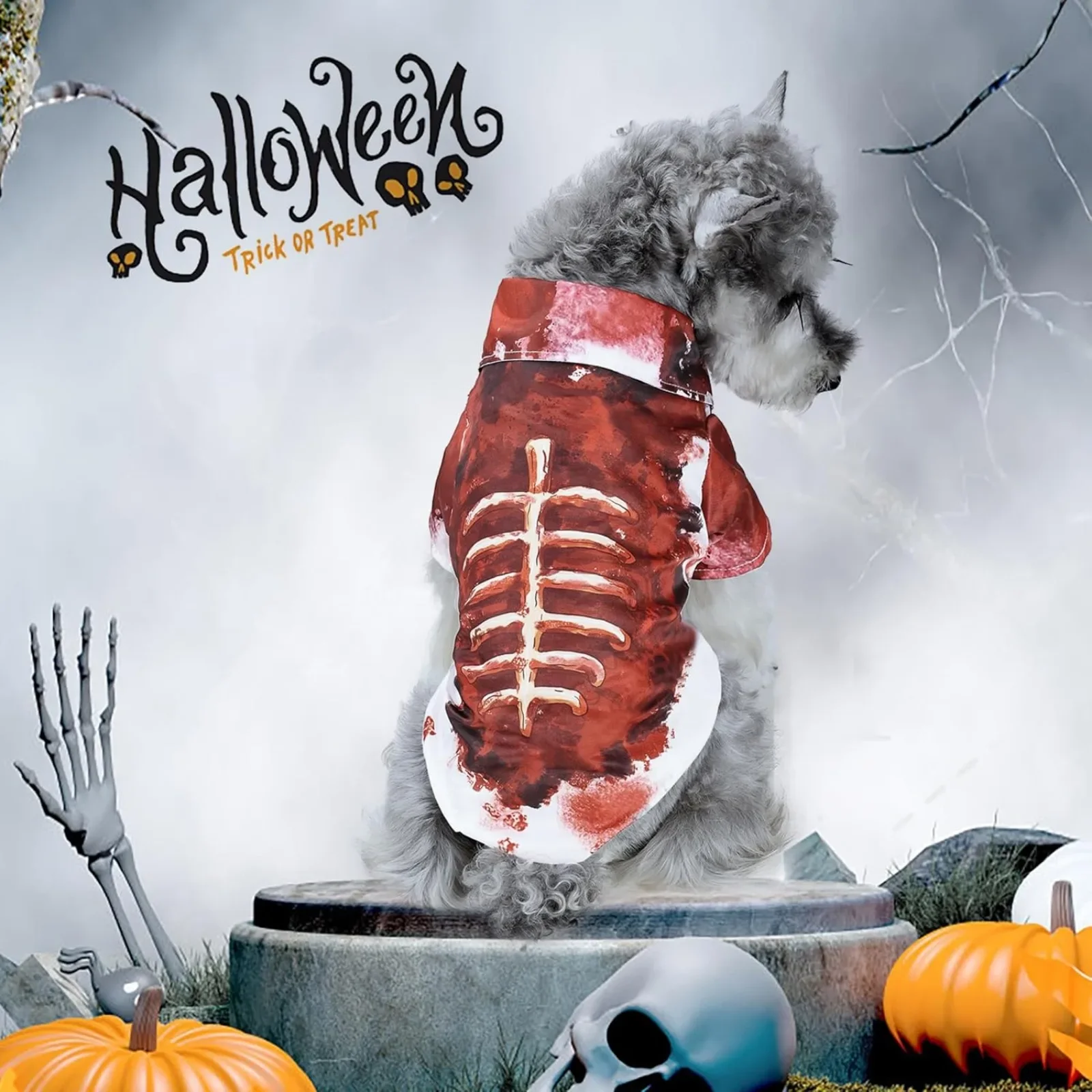 Ropa para mascotas de Halloween: Presentamos nuestra nueva ropa para perros de Halloween: una obra maestra salpicada de sangre y hormigueo en la columna vertebral diseñada para el atuendo de Festival definitivo de su compañero peludo. Disponible en cinco tallas (XS, S, M, L, XL), esta prenda de moda es perfecta para crear un ambiente inquietante en cualquier fiesta de Halloween, Navidad o temática.