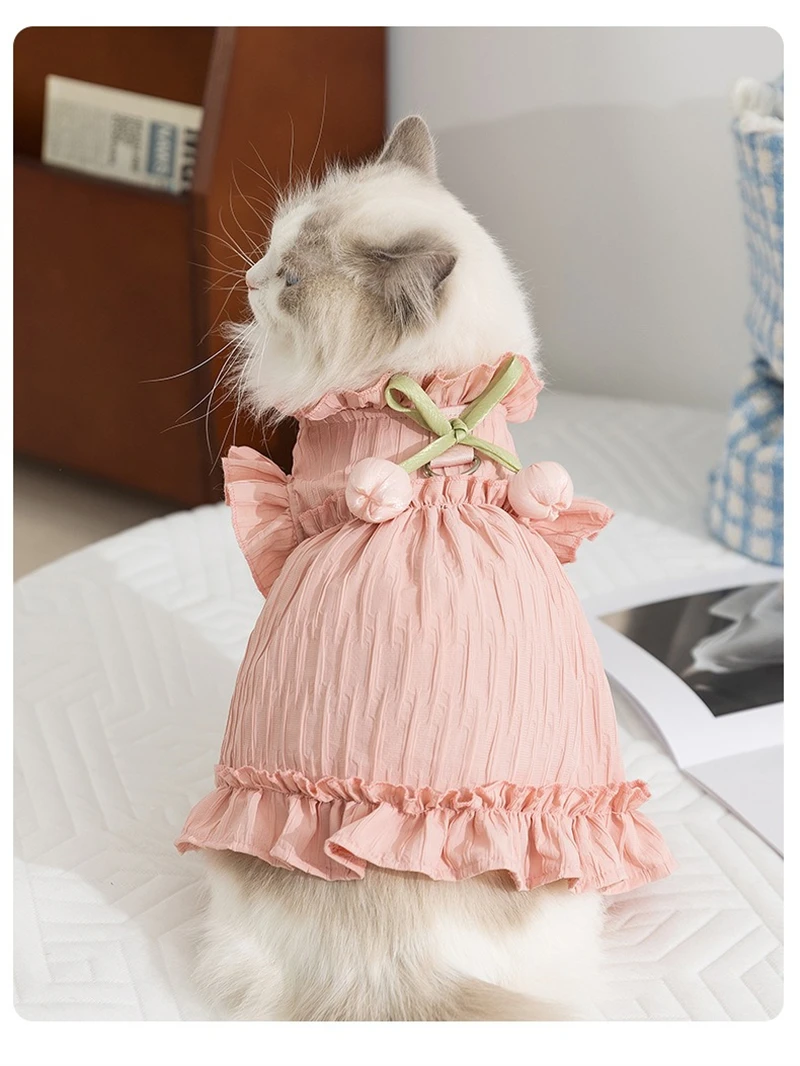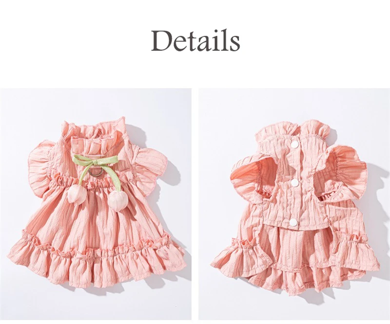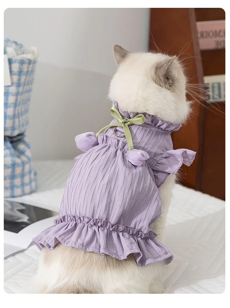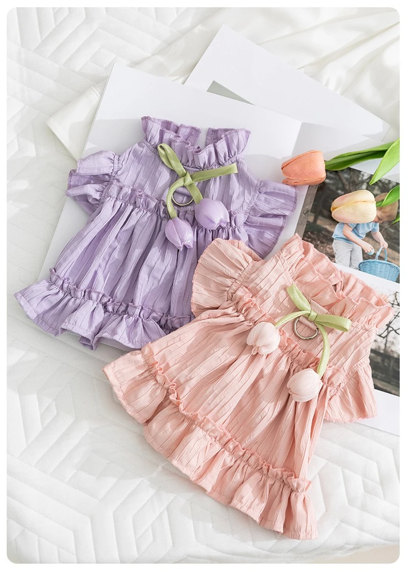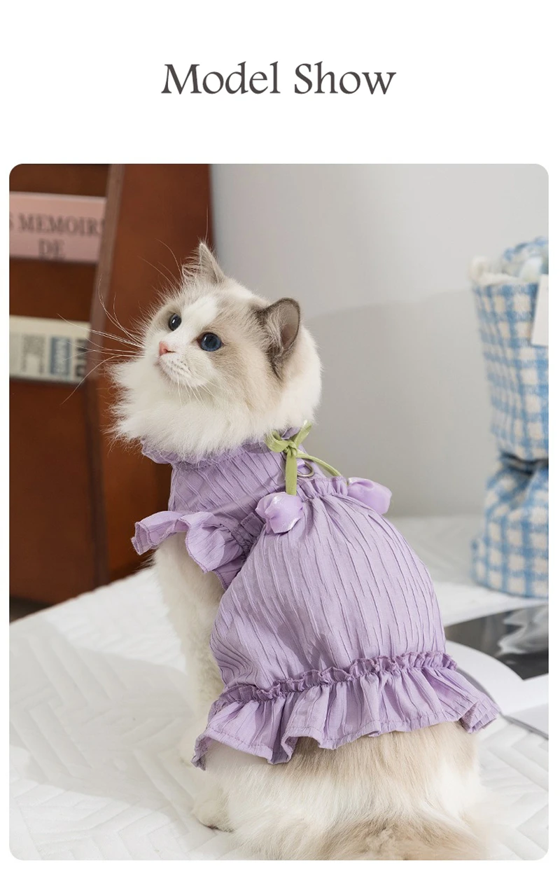 Ropa transpirable con diseño de tulipán para perros, vestidos de verano de princesa para cumpleaños, ropa para gatos con cuello levantado sólido para cachorros pequeños y medianos