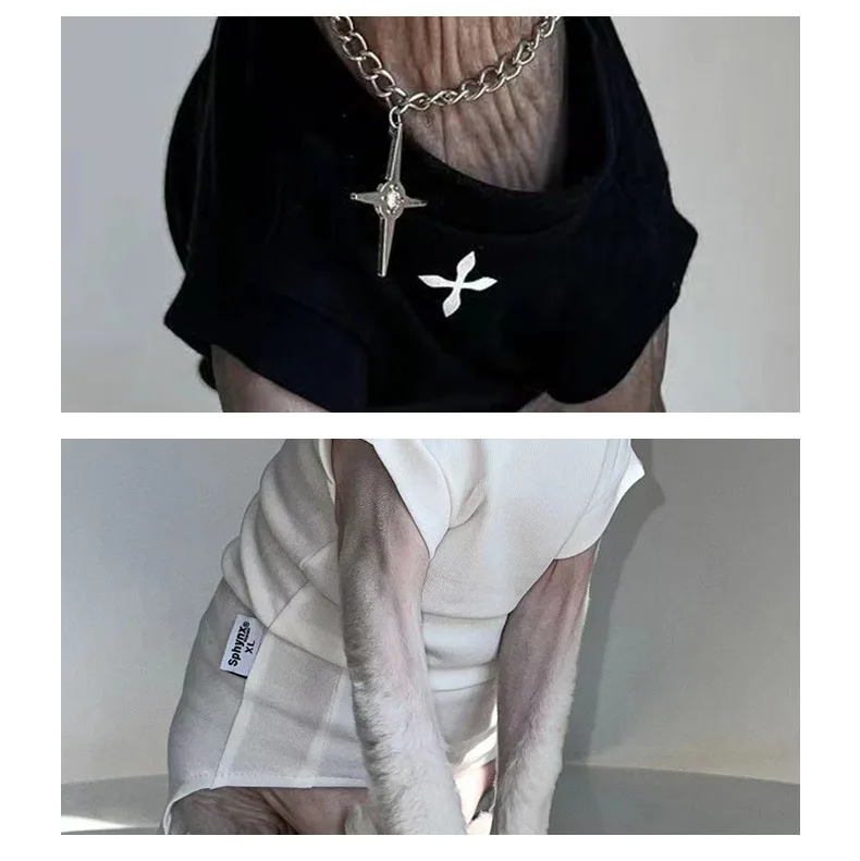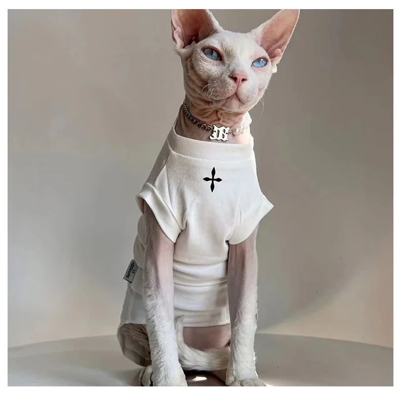 Ropa para gatos para mascotas, camisa de manga corta de algodón, pijamas para gatitos, camiseta sin pelo para gatos para Sphynx, Cornish Rex, Devon Rex, PeterbaldTamaño: XS S M L XL