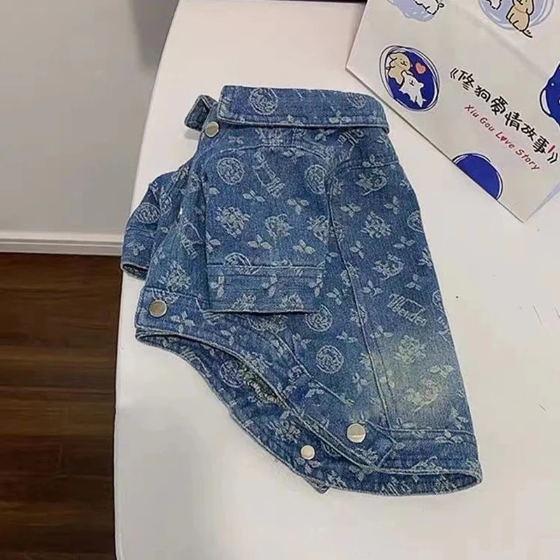 Ropa vaquera estampada para perros pequeños y medianos, monos de poliéster suave Unisex para gatos, abrigos con botones a presión, ropa de otoño para mascotas Chihuahua