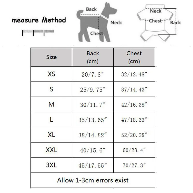 El tamaño de la ropa es más grande 2-3cm que el tamaño del perro.