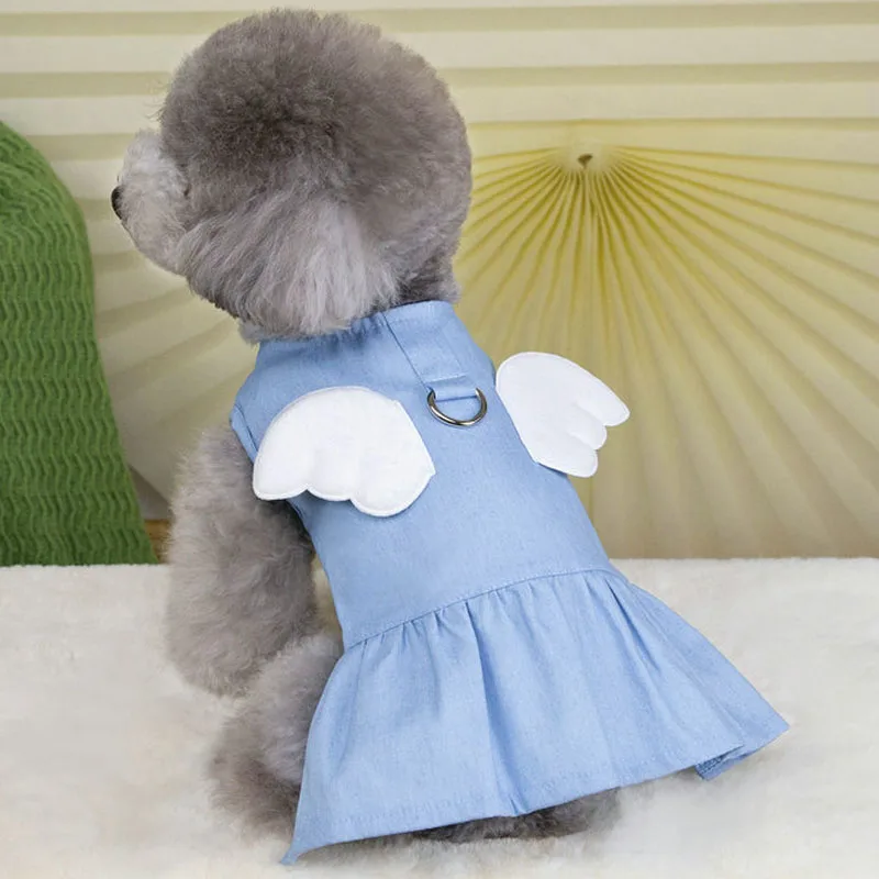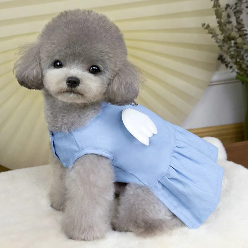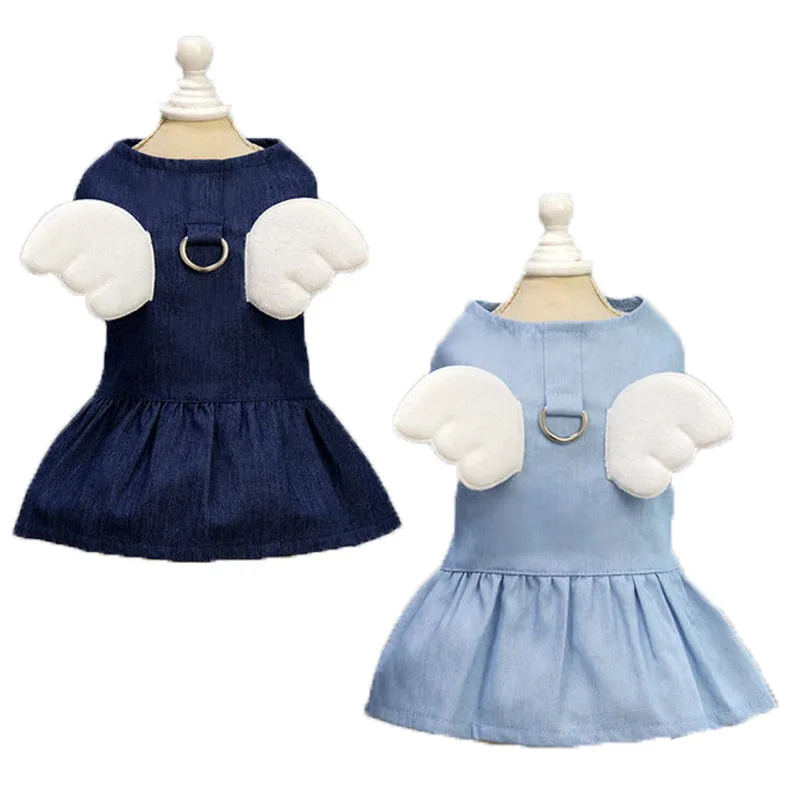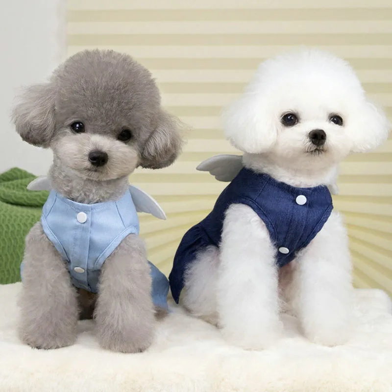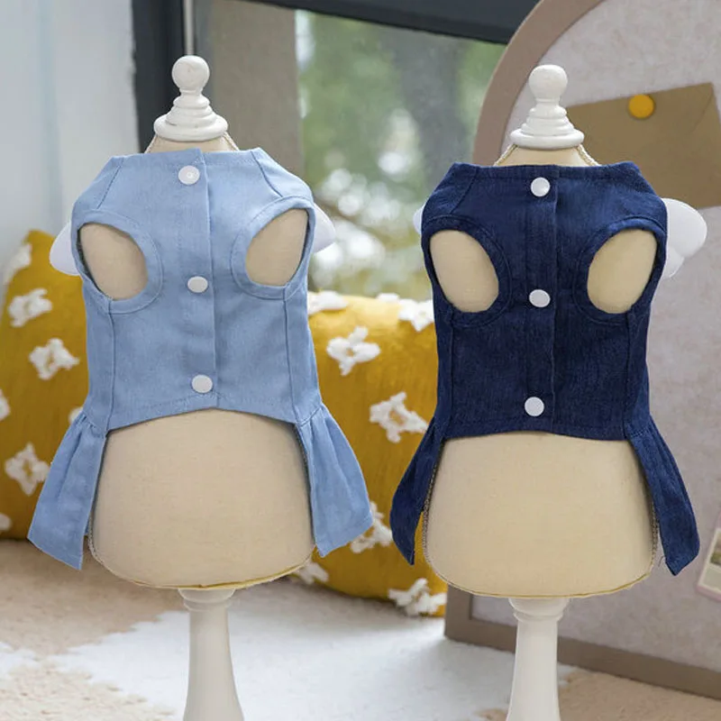Ropa vaquera para perro, alas azules profundas/ligeras, vestido vaquero para perro gato, para perros pequeños y medianos, falda de disfraz de cachorro y gatito Yorkie Terrier