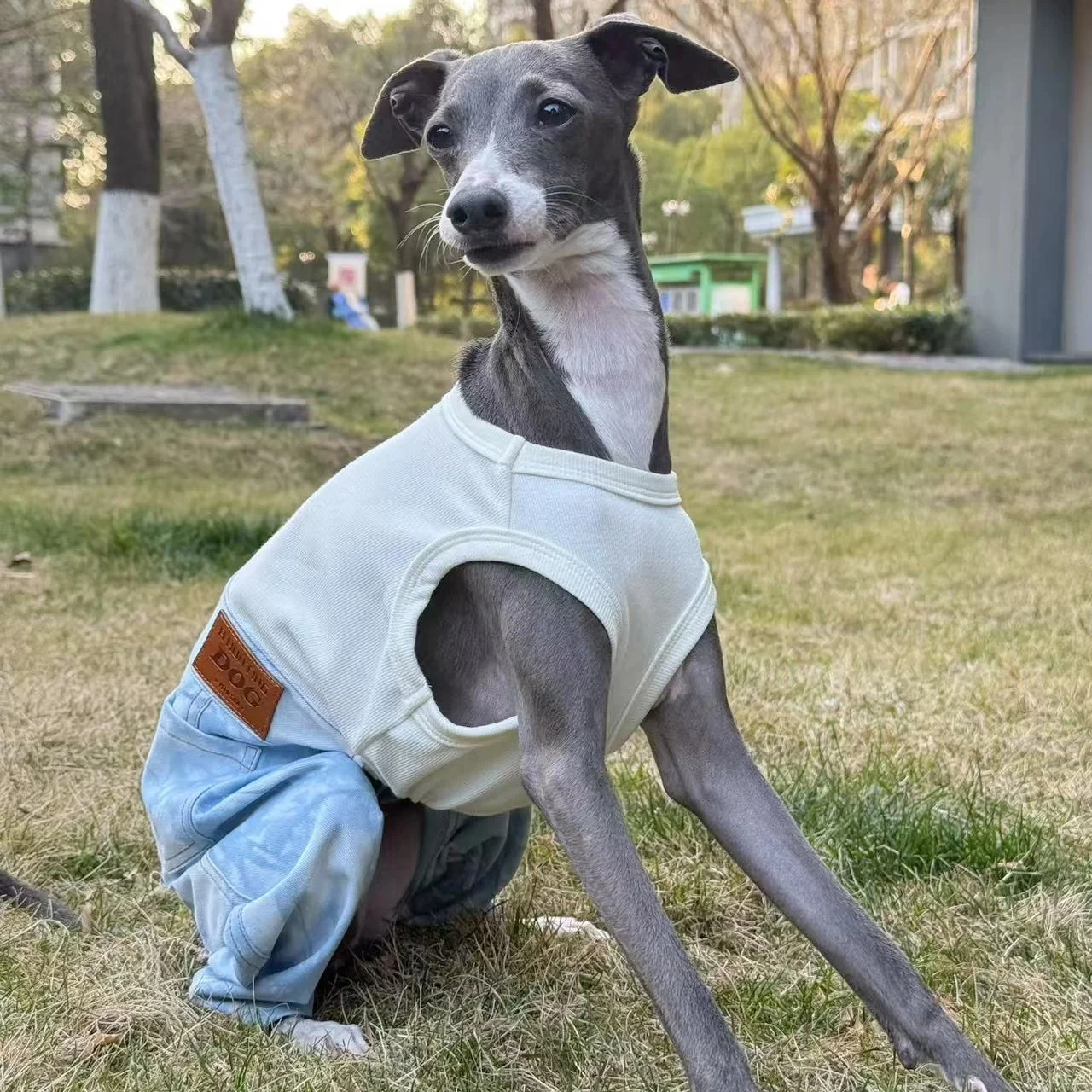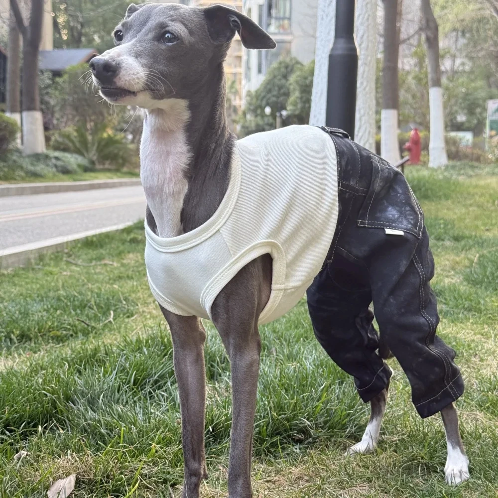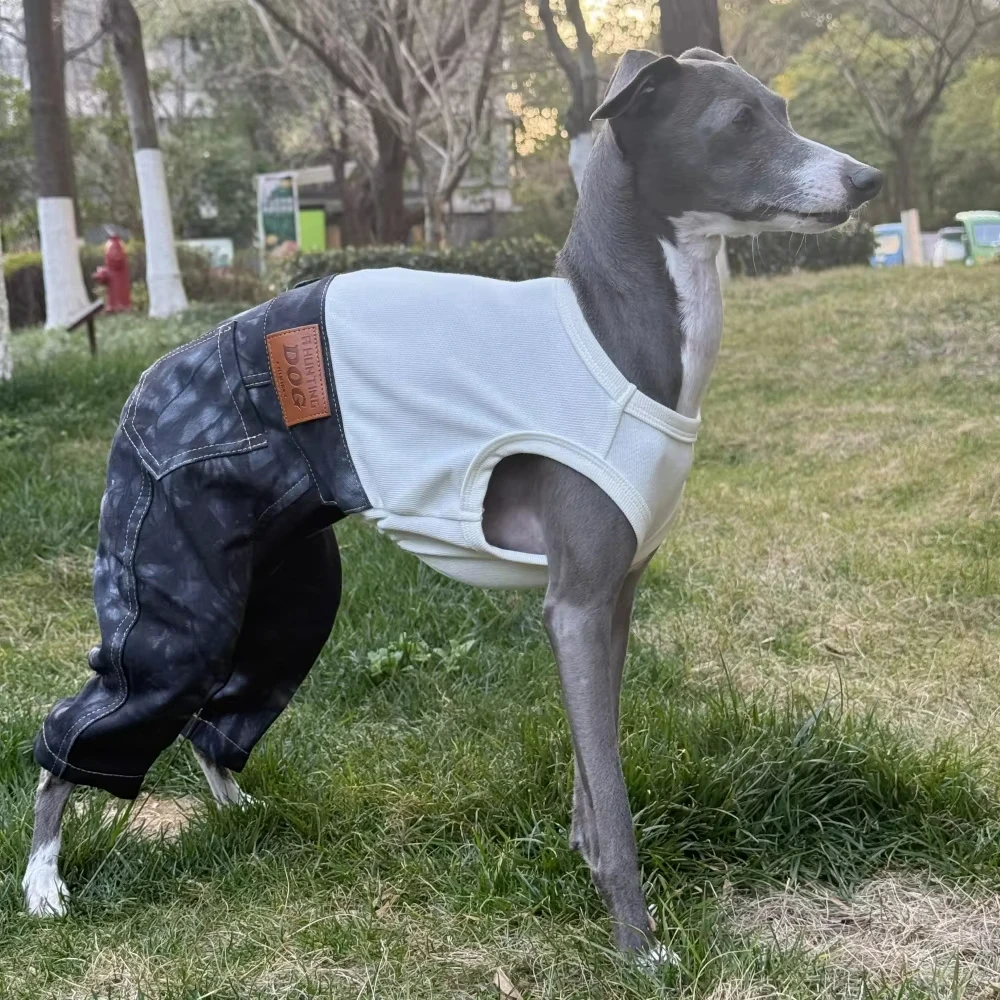 Ropa vaquera de una pieza a la moda para perro italiano Grayhound Spirng ropa de estiramiento alto con pantalones en verano para Terrier Whipbit