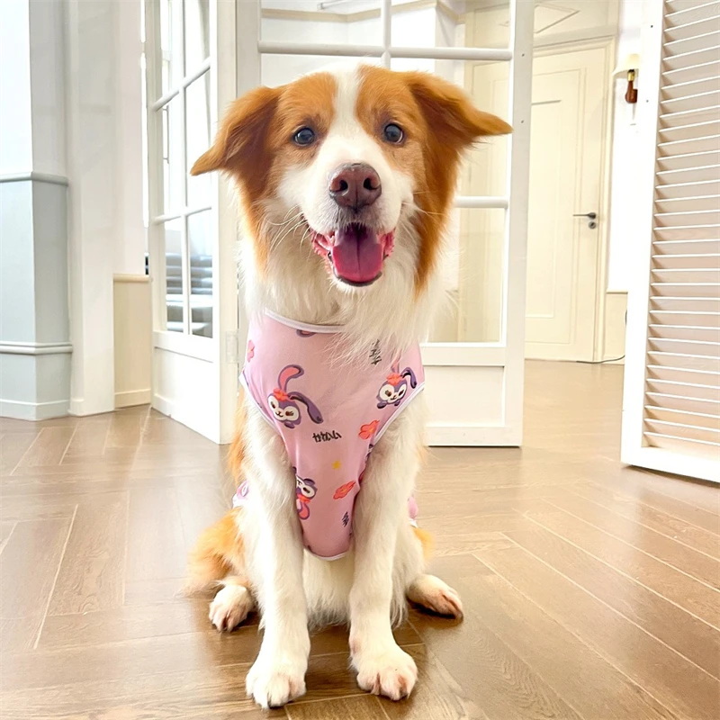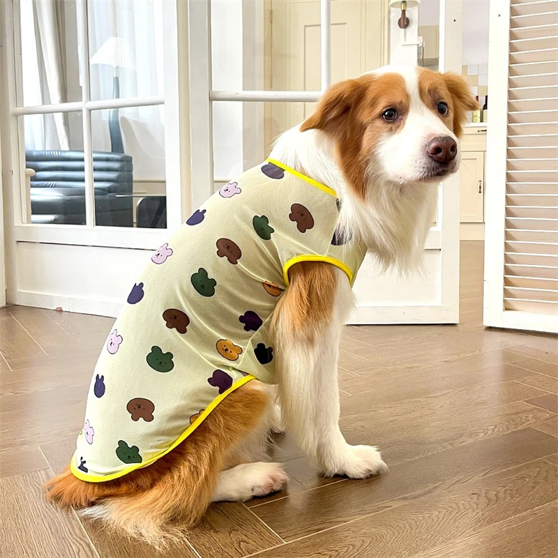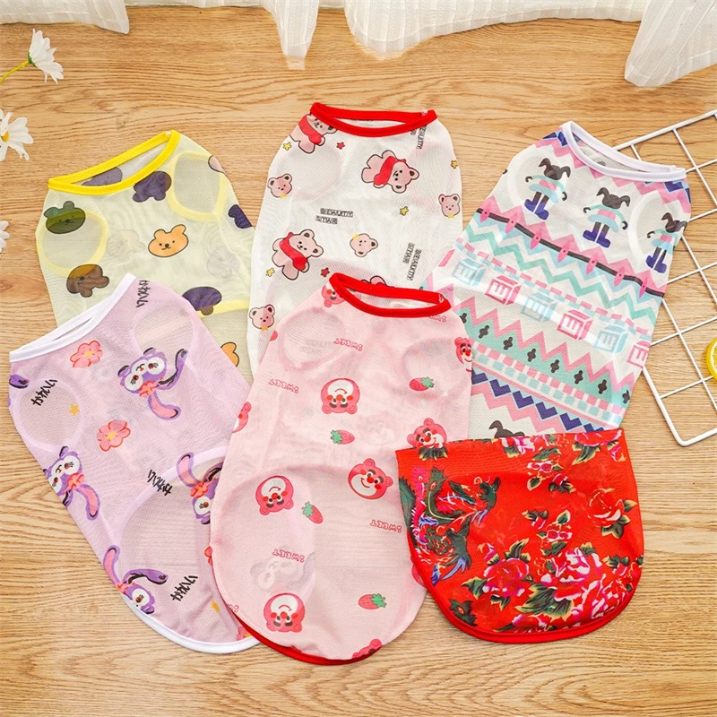 Ropa de verano para cachorros medianos y grandes de alta elasticidad, chaleco fresco de malla con protección UV para gatos, monos con estampado de dibujos animados para perros Husky York