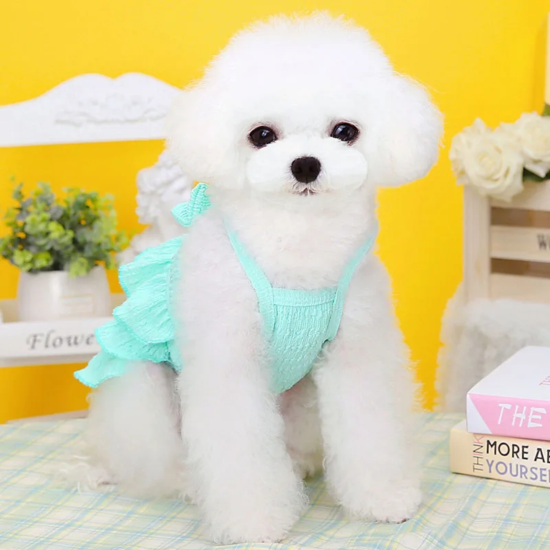Ropa para cachorros, vestido con tirantes para niña, falda verde y amarilla, ropa para perros pequeños y medianos, Dachshund Pug, vestidos para pastel de gato y mascota XL