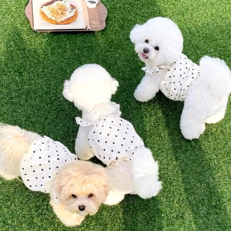 Ropa de verano con cuello de hongo para cachorros, vestidos de gato de algodón suave con lunares de diseñador, ropa para Chihuahua mediana y pequeña para mujer dulce