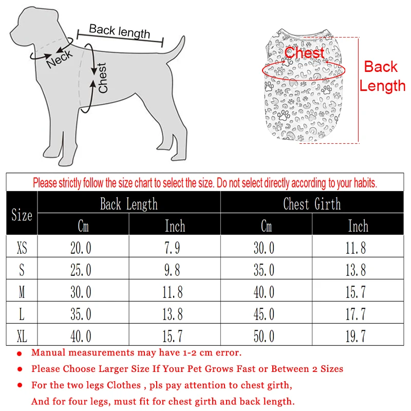 Para la ropa de dos piernas, preste atención a la circunferencia del pecho, y para cuatro piernas, debe ajustarse a la circunferencia del pecho y la longitud de la espalda.