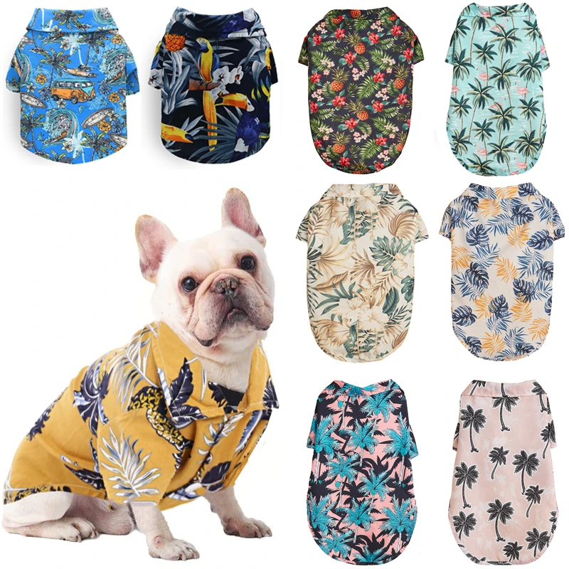 Nueva ropa de verano para perros y mascotas, camisas de playa con estampado de hojas de estilo Hawaiano para cachorros, disfraz de gato pequeño y grande para perros Chihuahua, ropa para mascotas