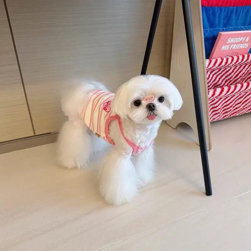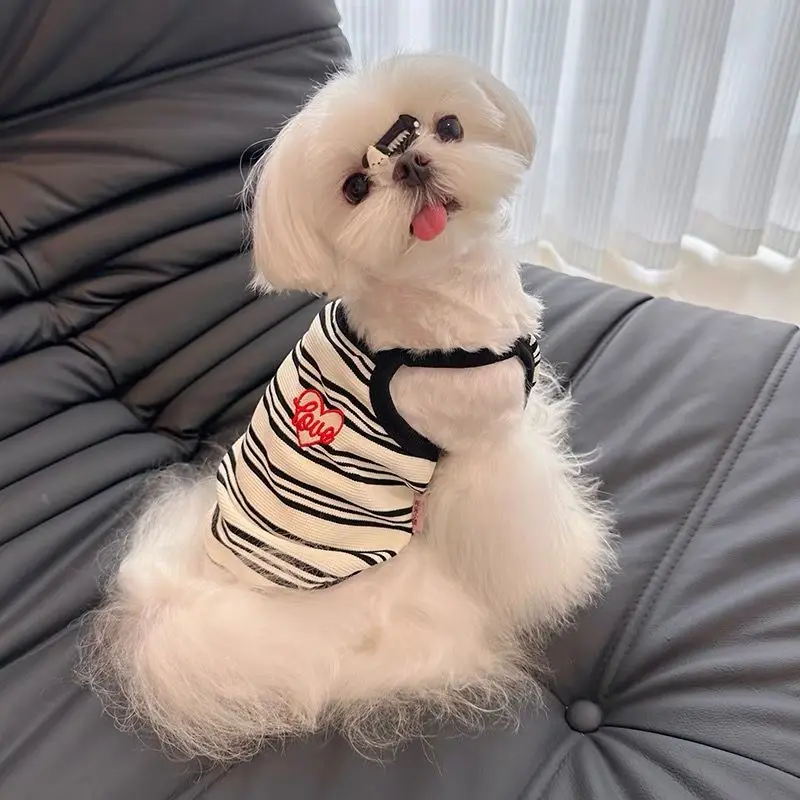 Ropa de verano para mascotas, camiseta sin mangas a rayas, protector solar bordado, ropa fina y transpirable para cachorros pequeños, chaleco refrescante para perros