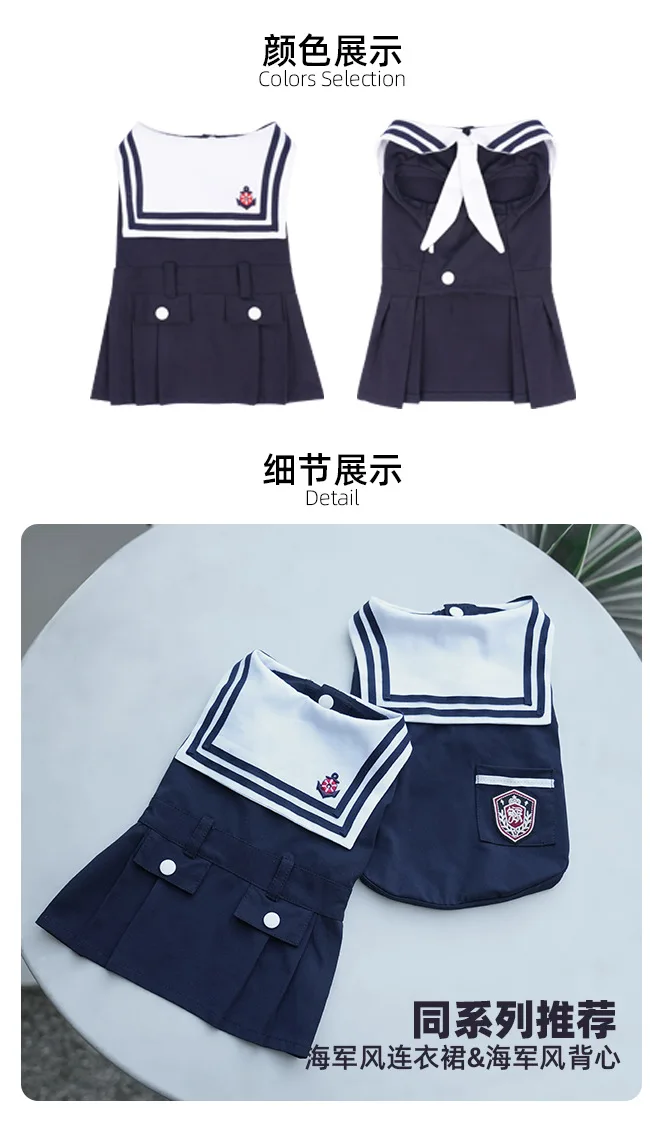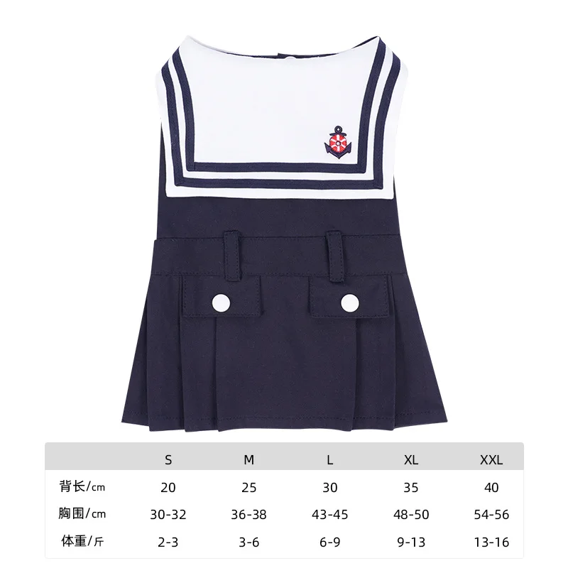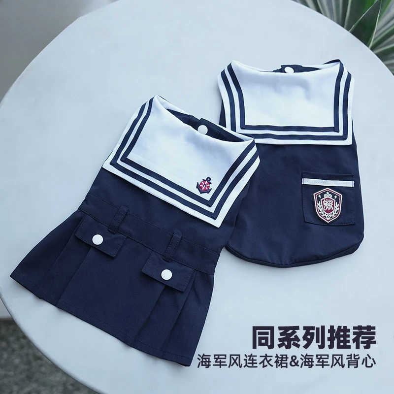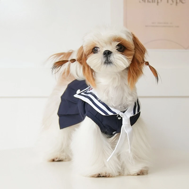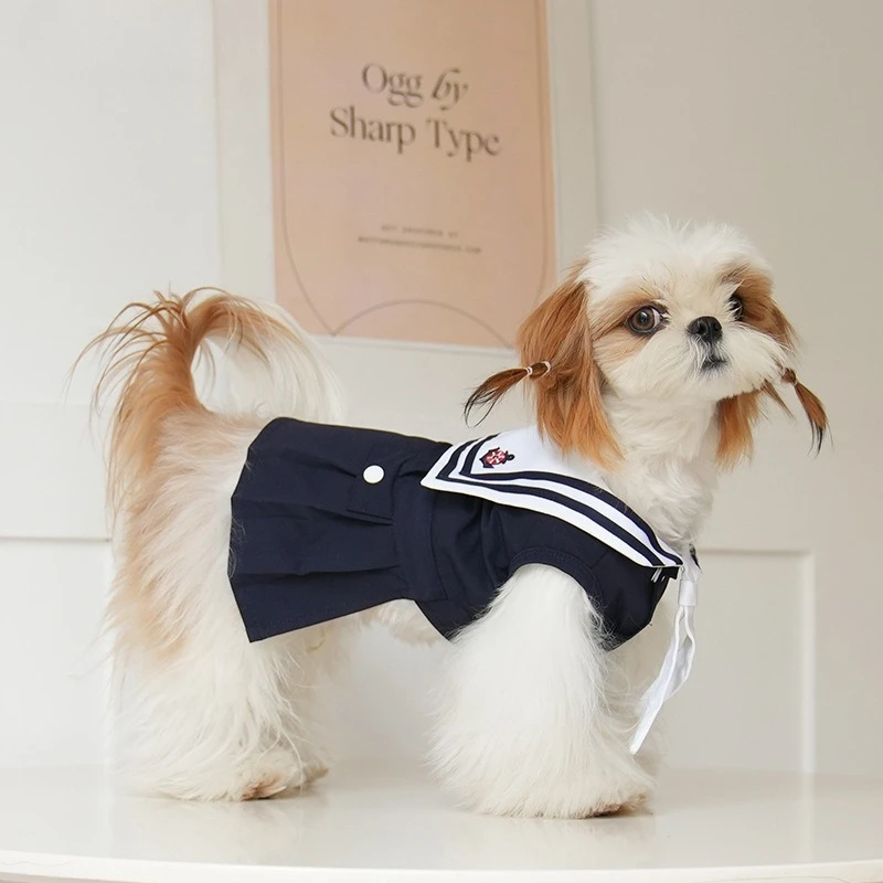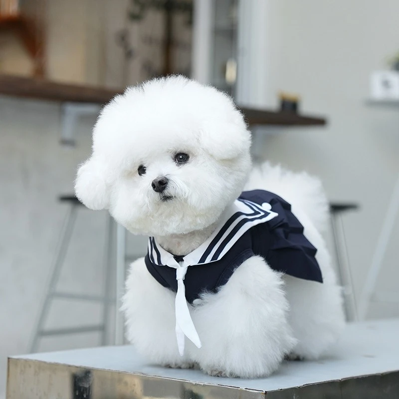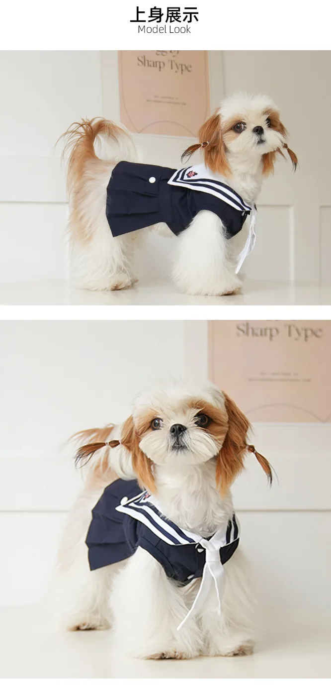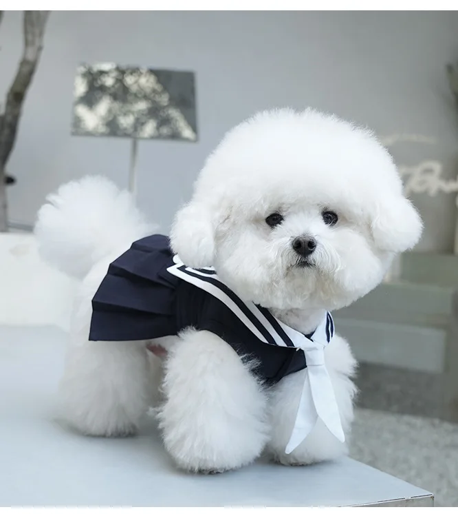 Ropa de verano para mascotas, ropa de marinero, Falda plisada bonita, ropa Schnauzer para cachorros, chaleco transpirable, ropa para cachorros