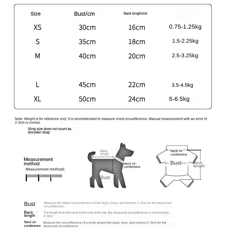 XS - (circunferencia de pecho de 30CM adecuada para 1-2,5 libras),